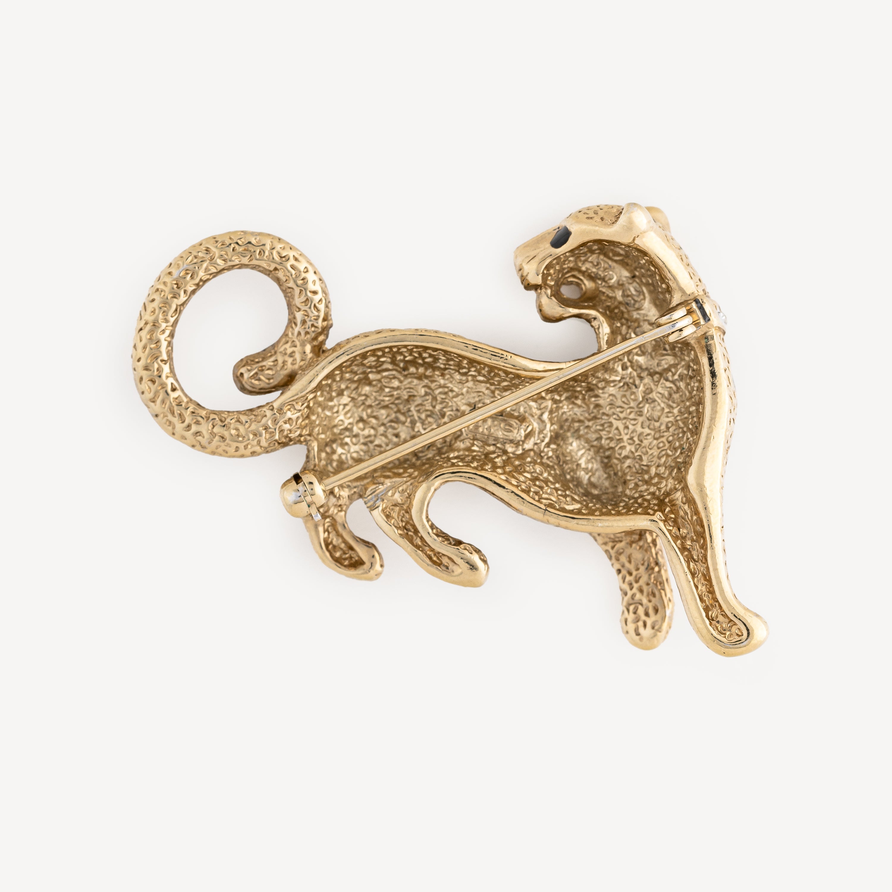 Vintage 22ct gold-plated metal panther brooch adorned with Swarovski crystals and black enamel. Can also be worn as a pendant.