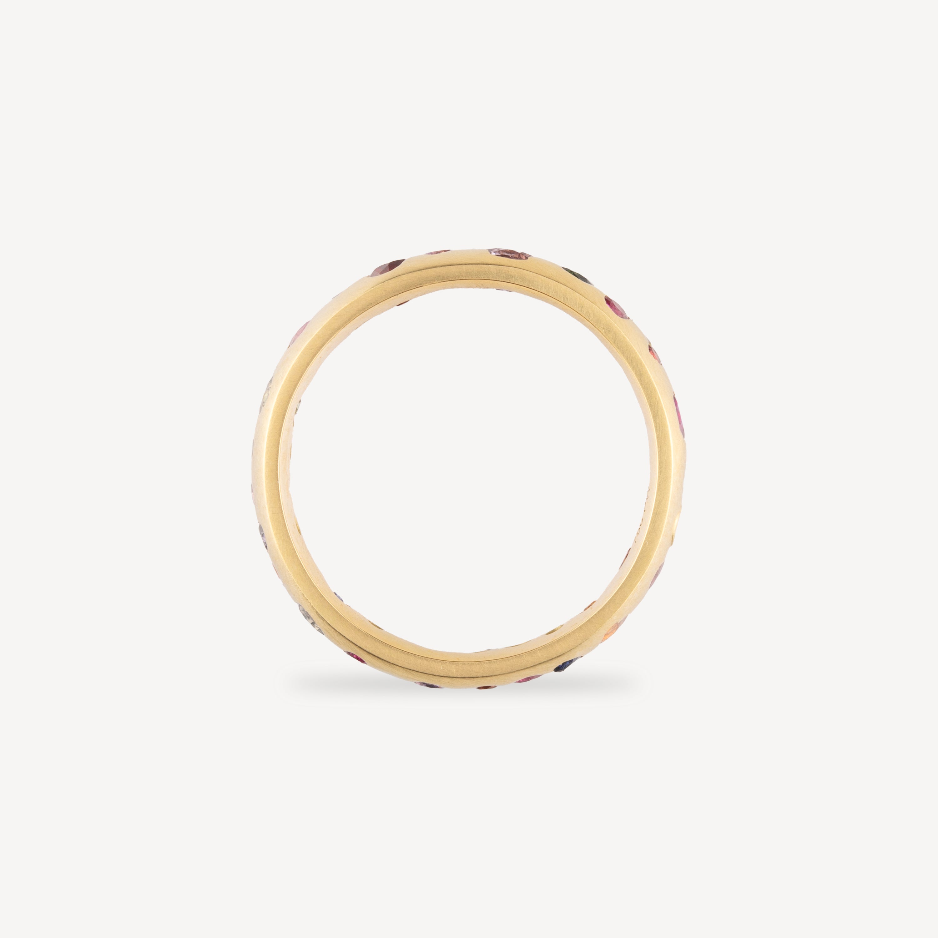 Experience the celebration of destiny and spontaneity with this stunning narrow Confetti ring, a true icon adorned with rainbow sapphires and crafted in 18k recycled yellow gold. This creation reveals dazzling magic from every angle. Let yourself be enchanted by the shimmering brilliance of multicolored sapphires and the timeless nobility of gold, a perfect harmony between luxury and joie de vivre.