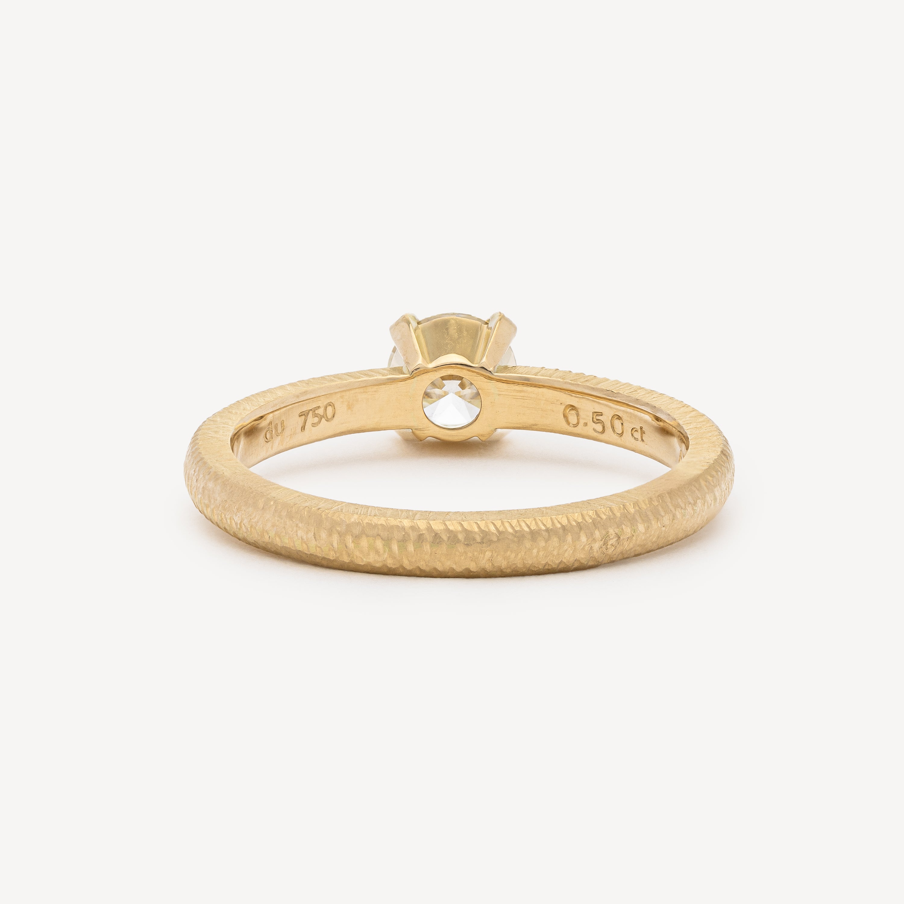 This classic solitaire ring features an exquisite 0.50 ct diamond, set in prong settings. The exterior of the ring features a hand-fluted and contoured surface, while the interior of the band and the setting are polished.
