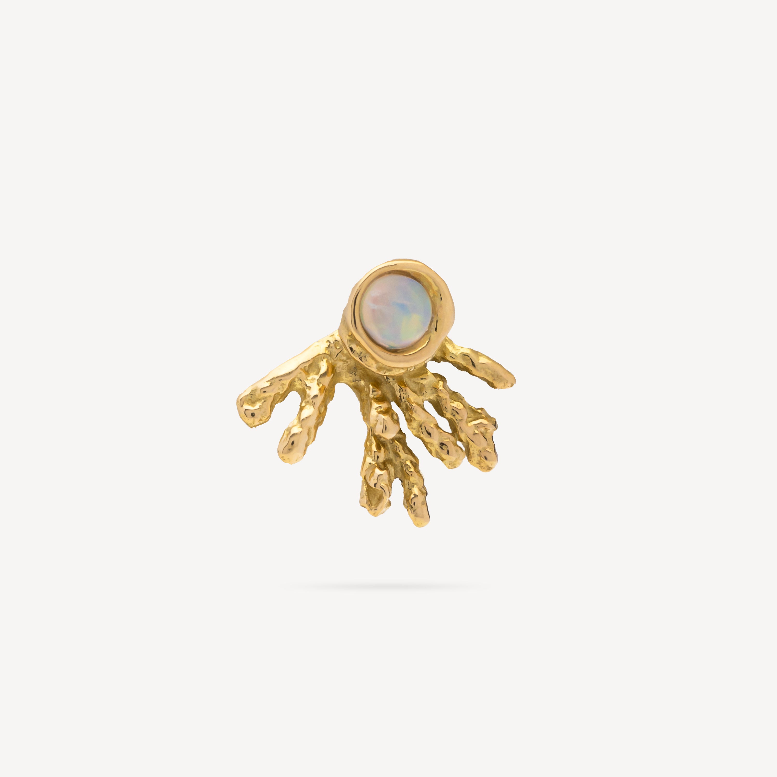 Elegant and timeless, these 18-carat gold stud earrings showcase delicate opal stones with iridescent reflections.