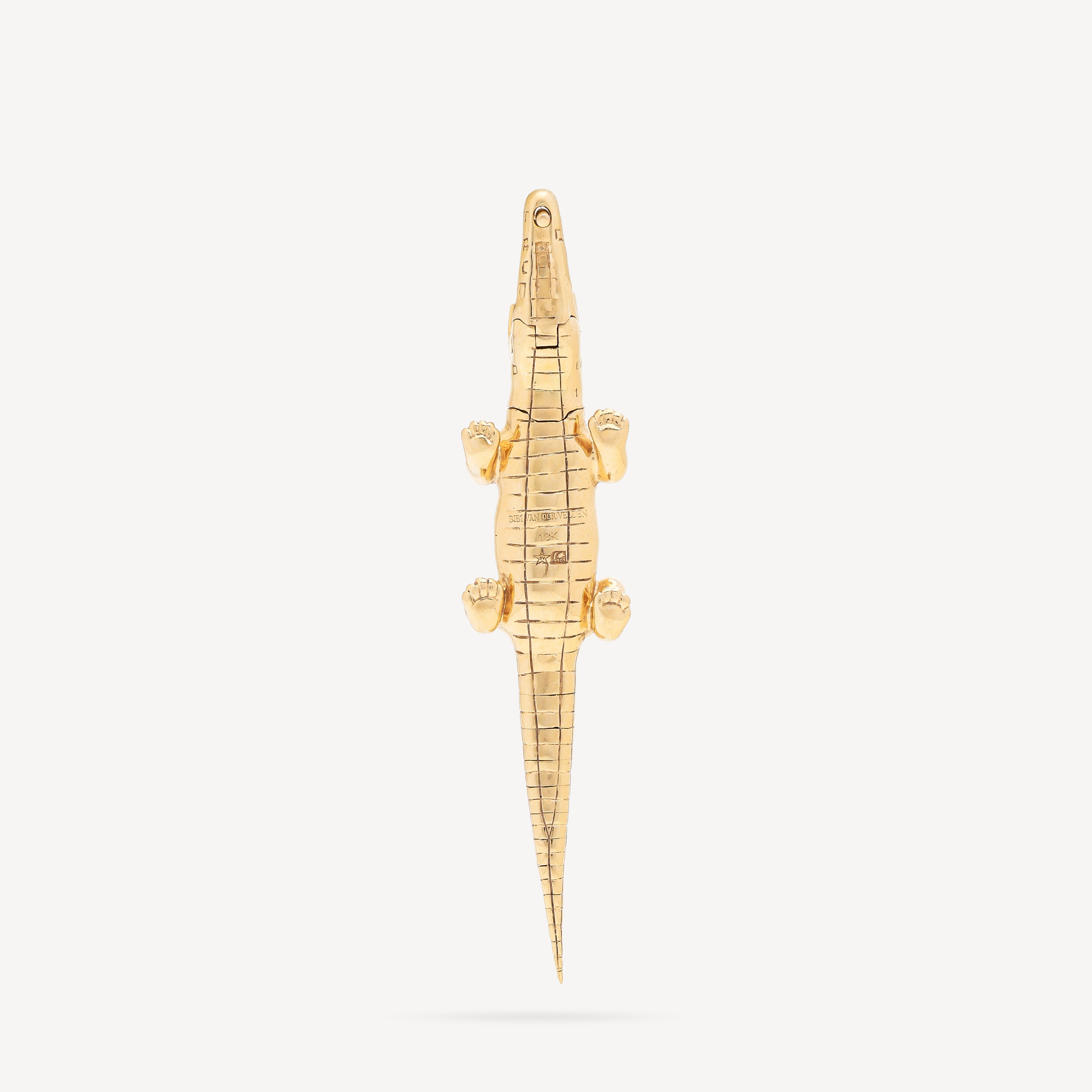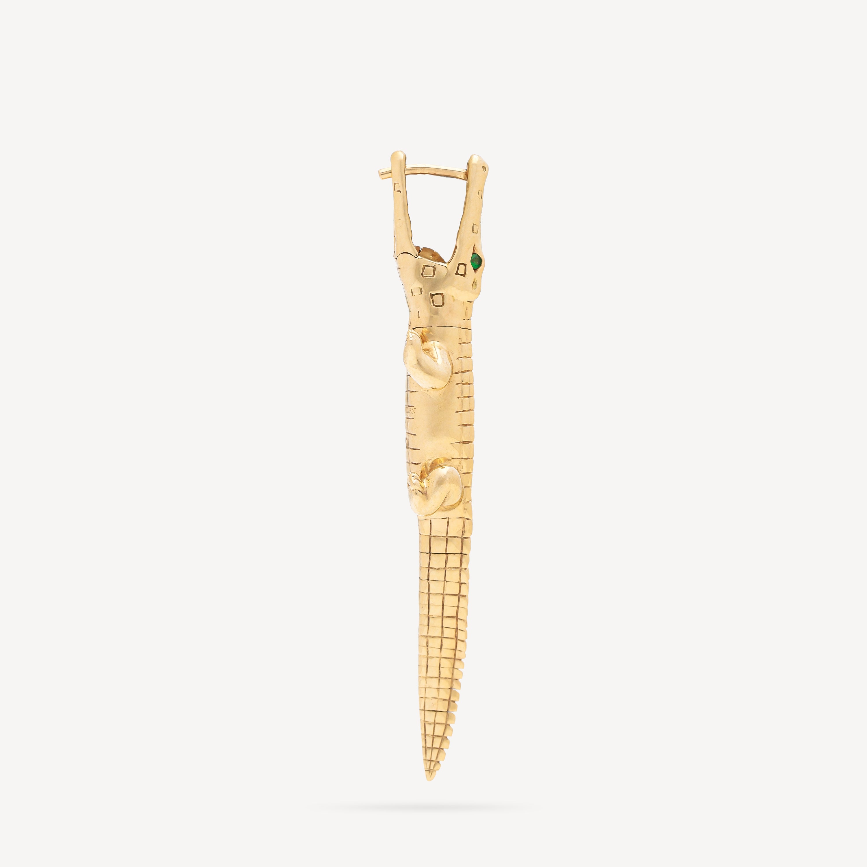 The Alligator Tsavorite Bite earring is crafted from yellow gold and set with green tsavorites. This piece can also be worn as a pendant.