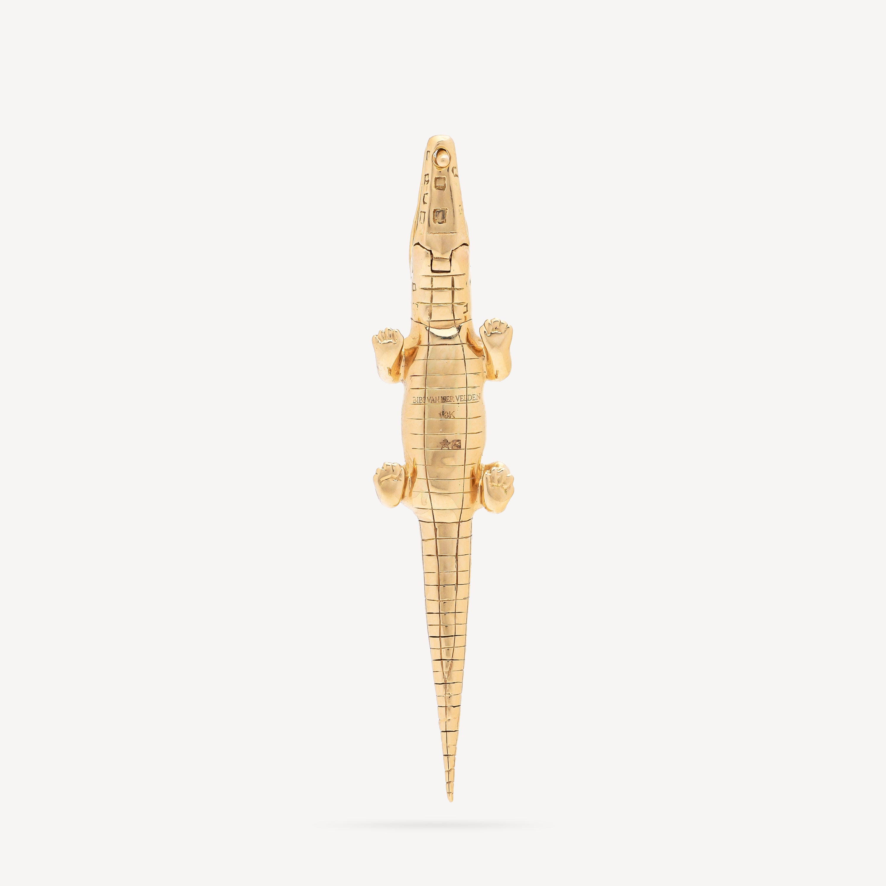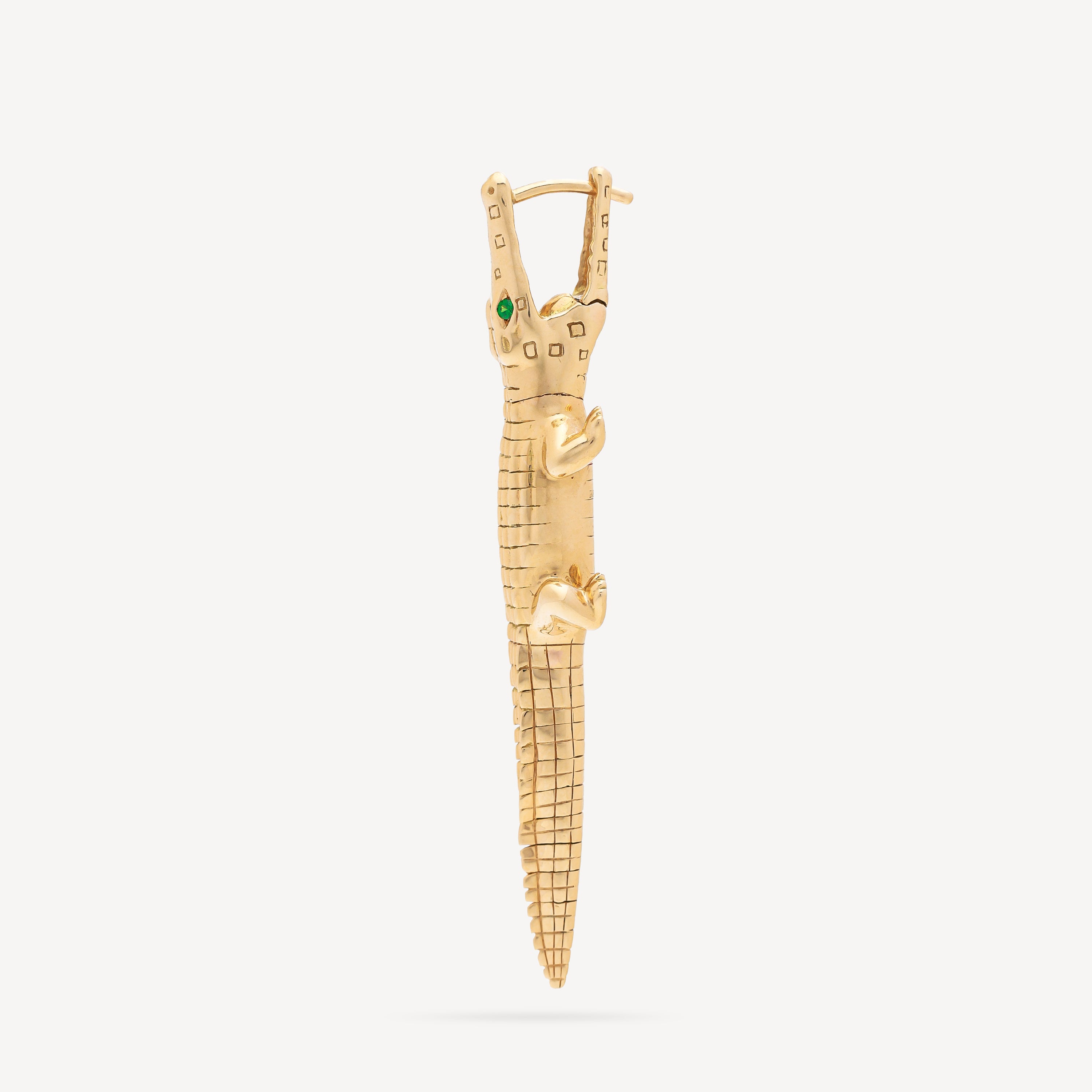 Crafted in yellow gold, this alligator-shaped earring will enhance your ear. Its eyes sparkle with tsavorites.