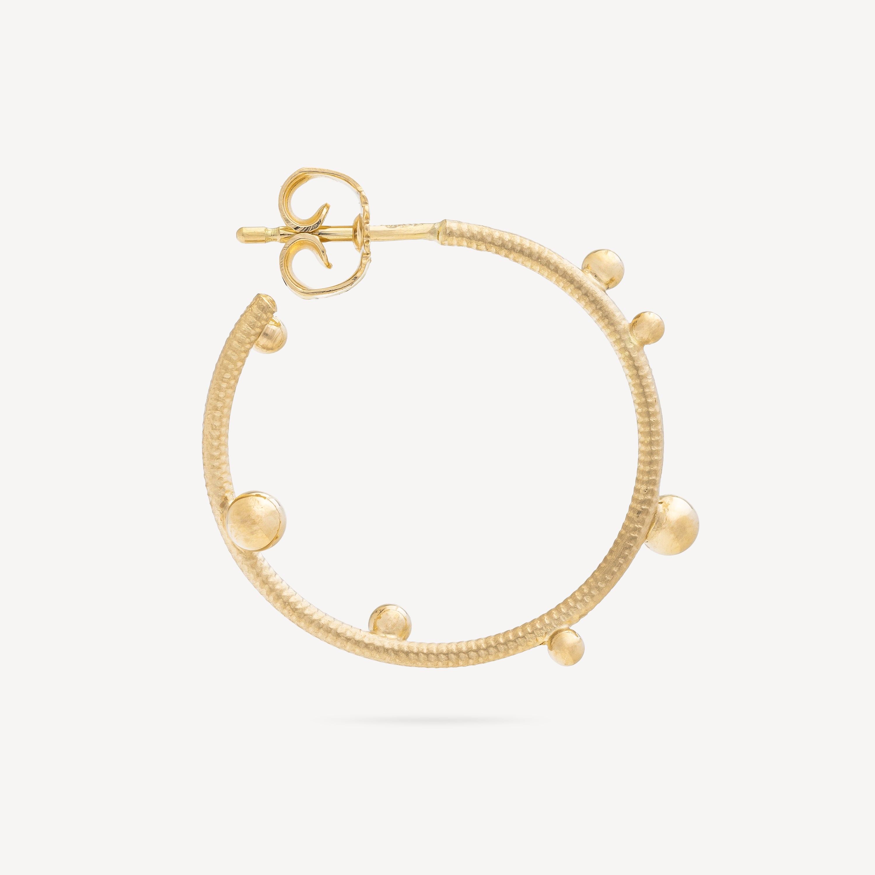 Dulong Fine Jewelry reinterprets the classic hoop earring. In keeping with the rest of the Delphis collection, the earring is adorned with small, shiny beads that offer a unique, exclusive, and casually bohemian style.
