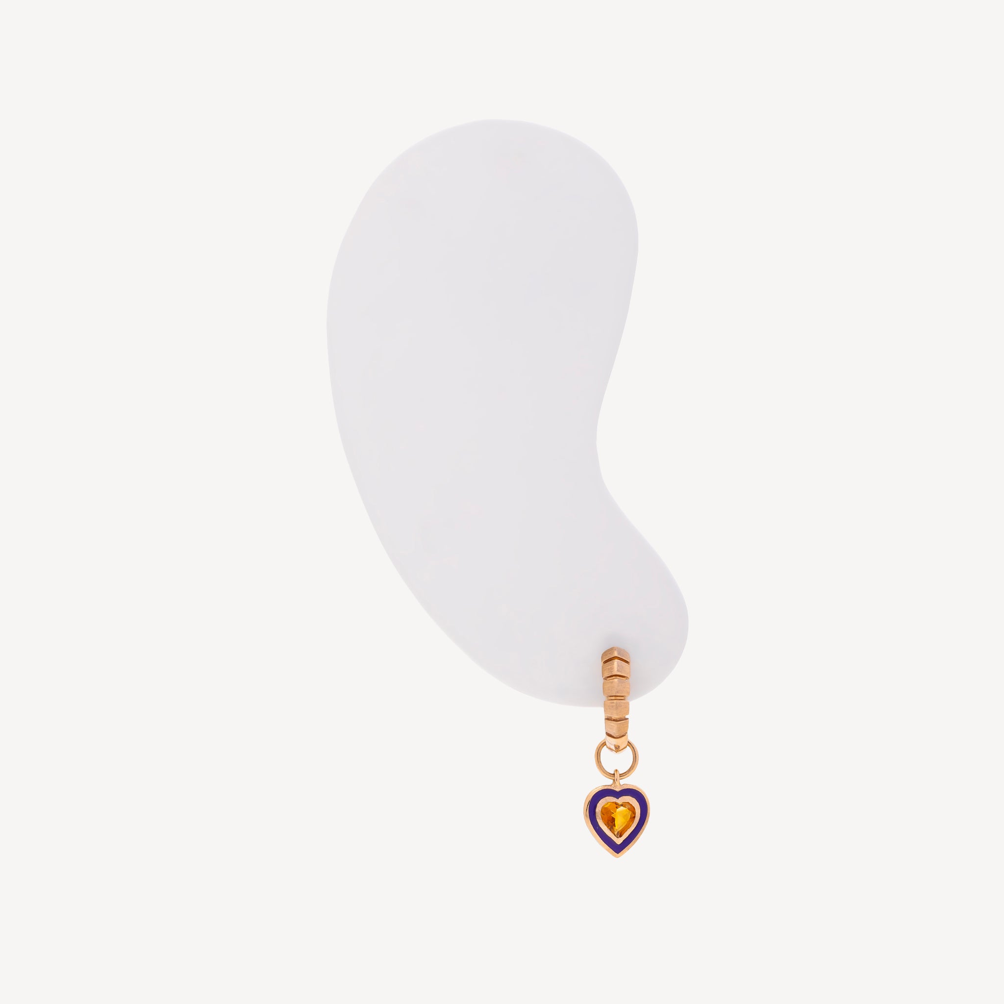 This Selda rose gold hoop earring is inspired by the element of fire, which represents life energy. The main shape of the Dragon Lady collection is the dragon, a symbol of strength, courage, and prosperity.