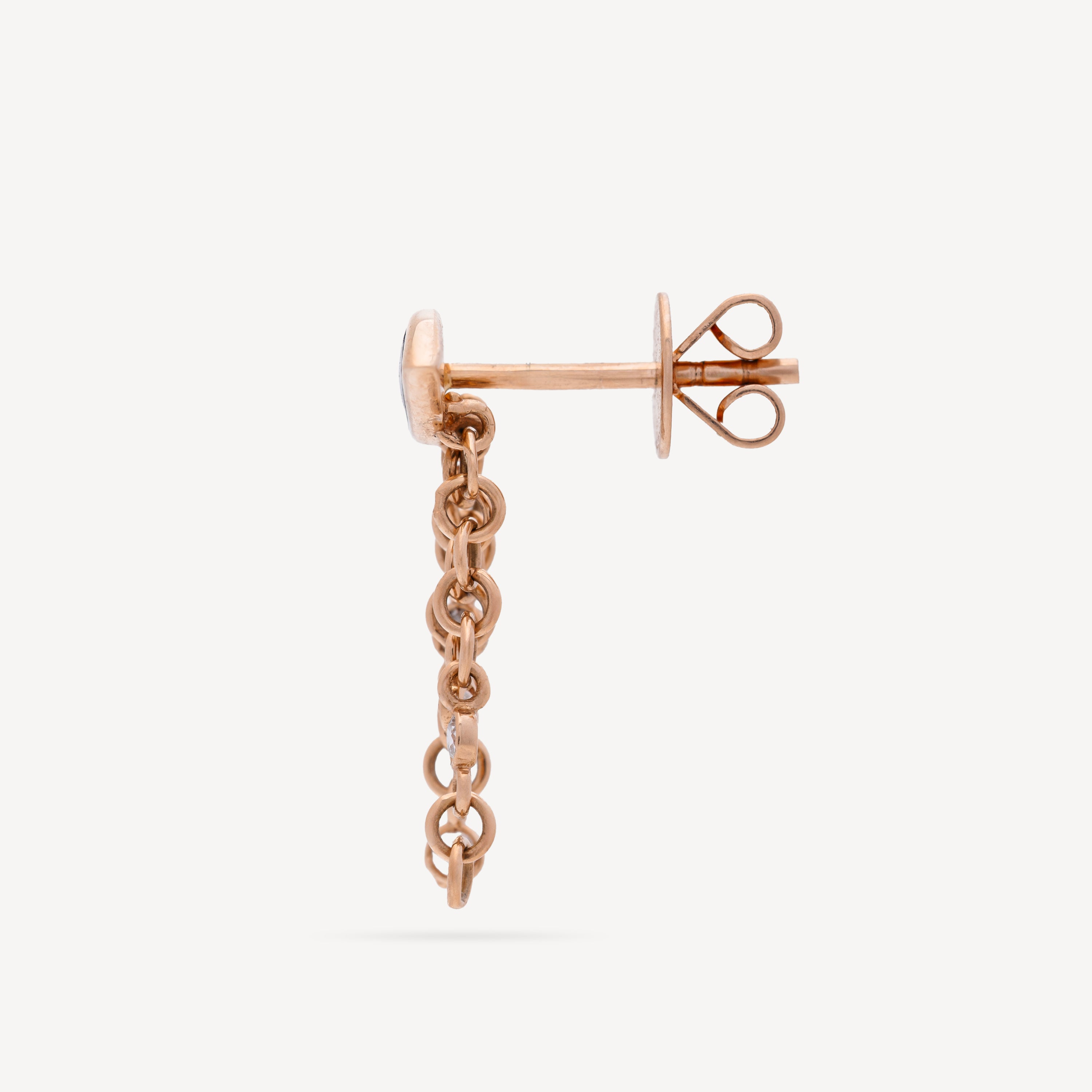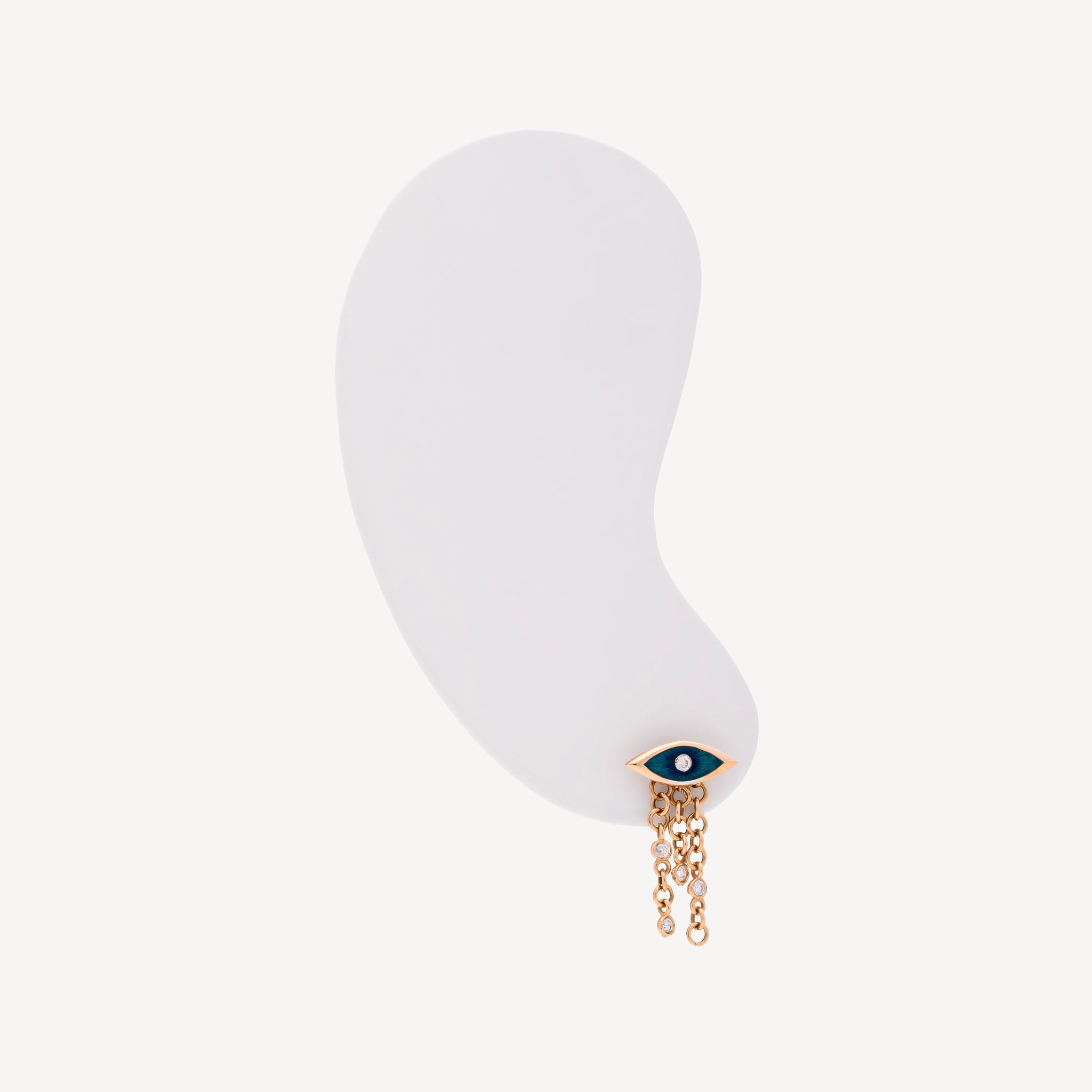 This rose gold Evil Eye Chain earring is beautifully decorated with an enamel eye adorned with three chains with white diamonds.