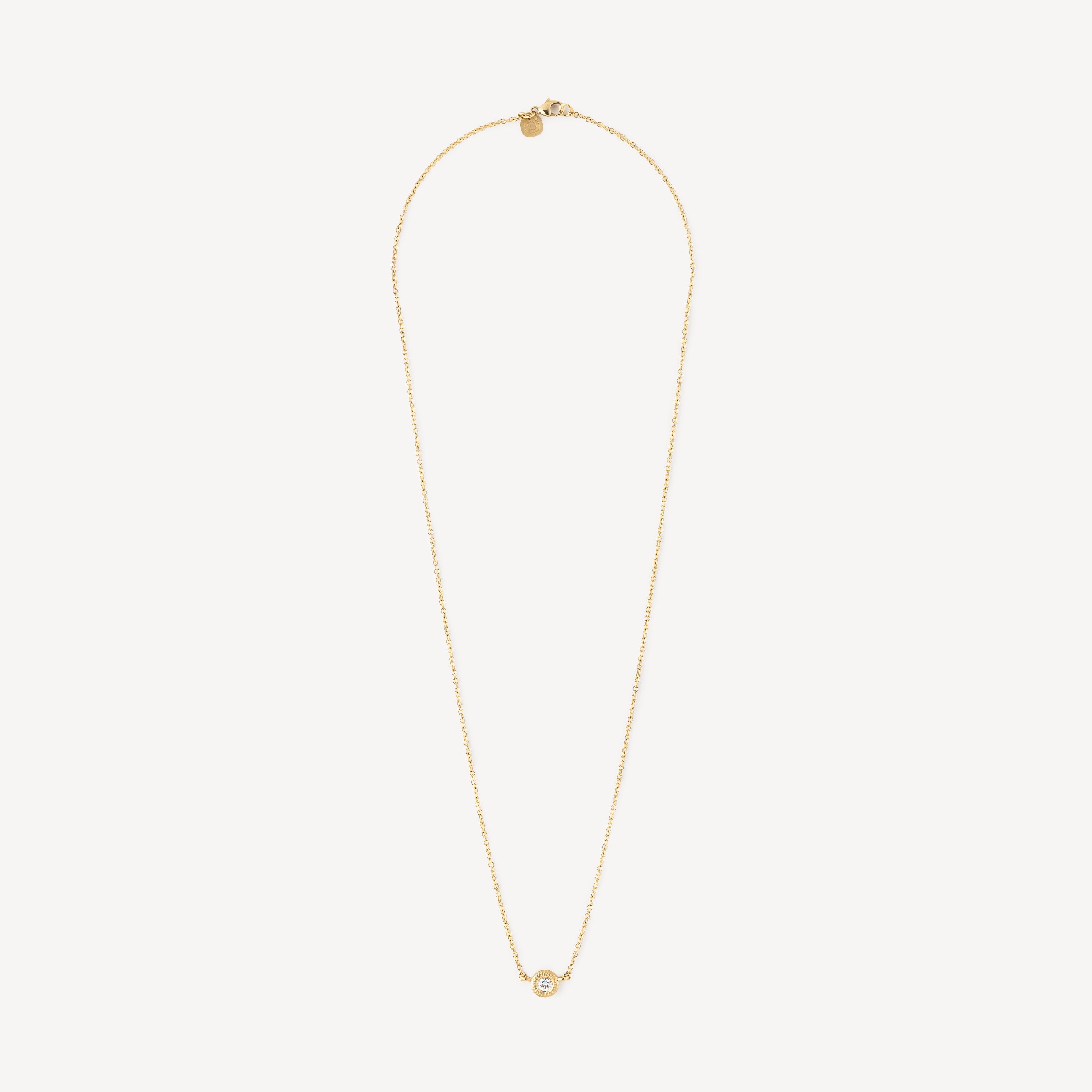 The Glory necklace features a diamond set in gold and surrounded by a handmade circle that highlights the stones' natural brilliance. The result is a unique necklace with a timeless design that can be passed down from generation to generation.