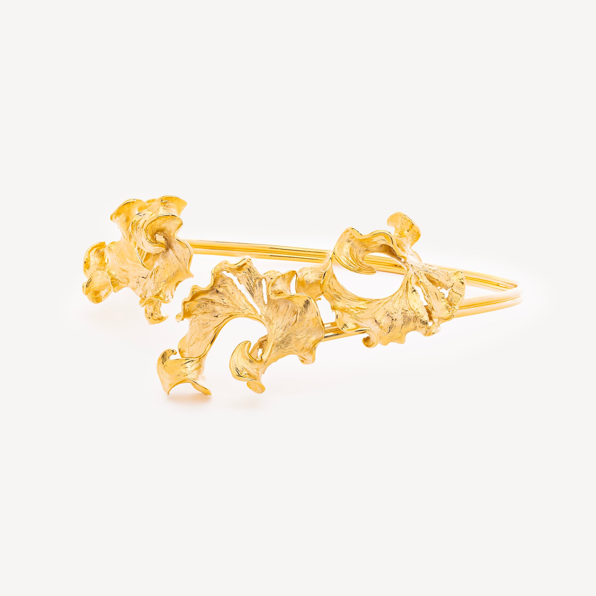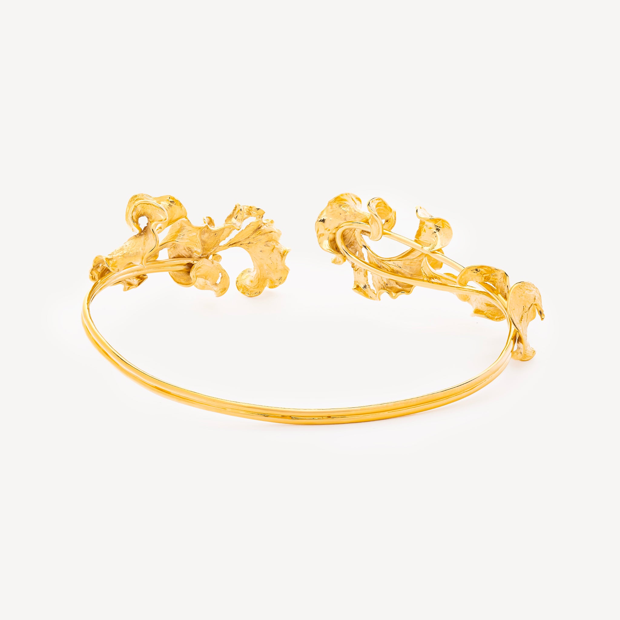 Collier ras-du-cou en laiton plaqué or jaune 24 carats, avec motifs organiques. L'automne, saison de l'âme... et des feuilles. Les graines et les fruits d'acacia qui tombent et recouvrent notre corps, nous enveloppent.
