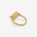 Yellow gold ring with Egyptian cat motif set with two diamonds on the sides.