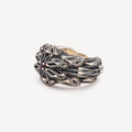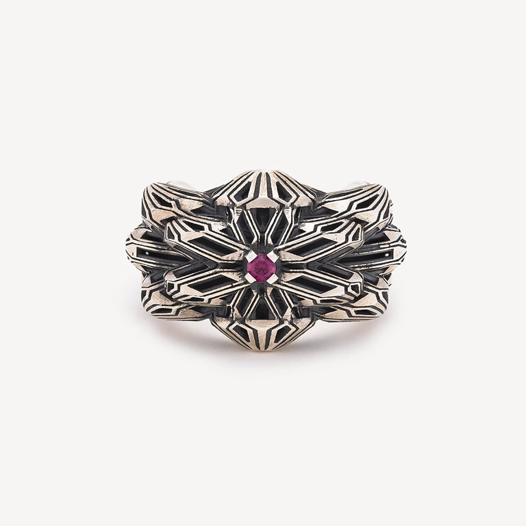 Cette bague Mosaïs en argent met en valeur une délicate orchidée sculptée, sublimée par un rubis au centre. Pierre de passion et de vitalité, le rubis est reconnu pour stimuler le courage, la confiance en soi et la force intérieure. L’éclat rouge de la pierre illumine le motif floral, tandis que l’argent souligne avec élégance la finesse des courbes. Conçue pour évoluer avec le temps, la bague se patine doucement, révélant un caractère unique à chaque instant.