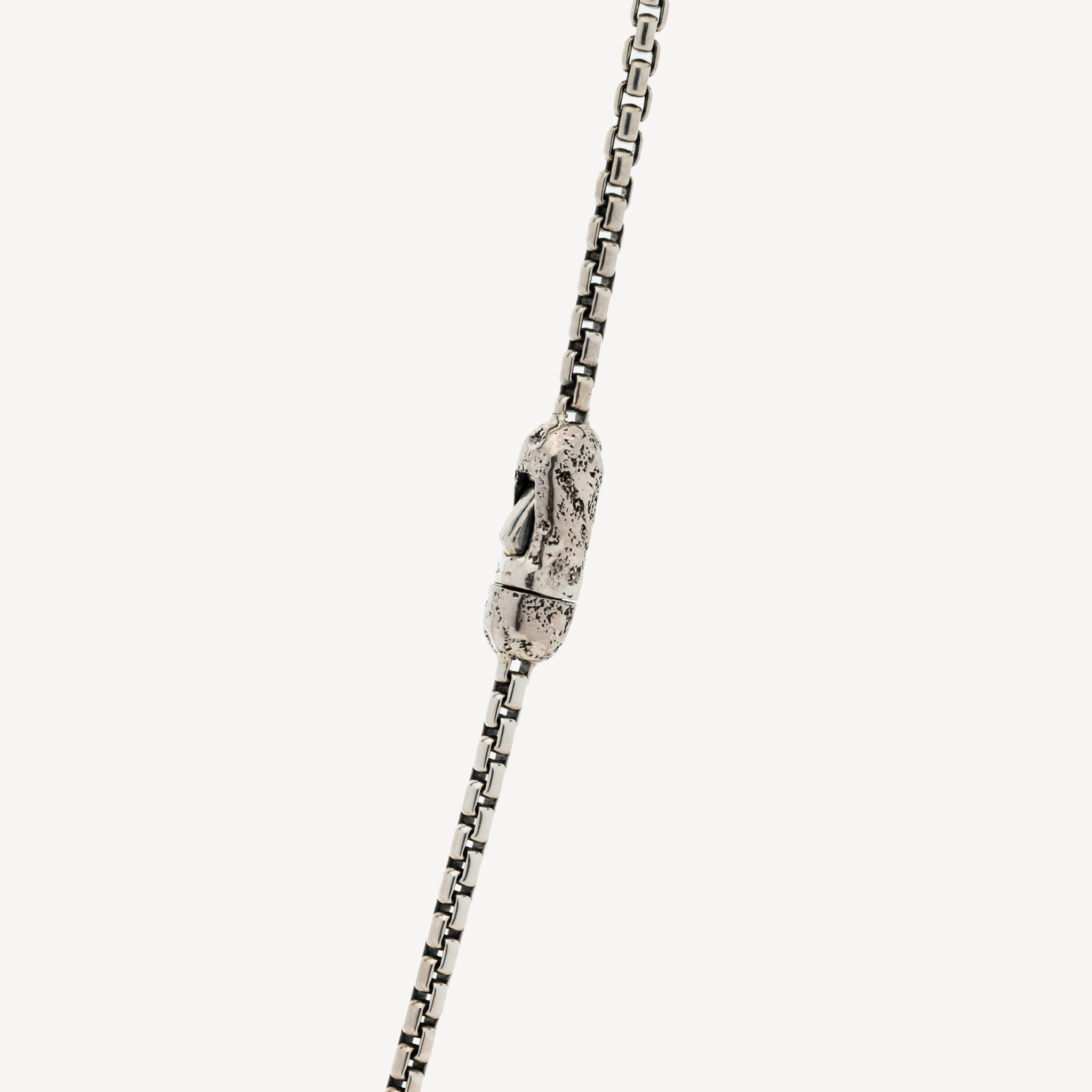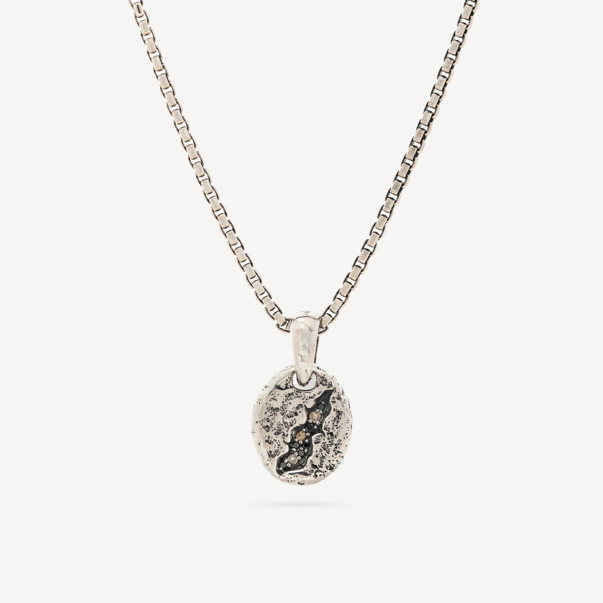 Ce collier signé Carina Hardy en argent recyclé se distingue par une cavité centrale et une surface brute marquée de textures minérales, où des diamants noirs et bruns sont sertis avec précision. Façonné à la main à Bali puis serti à Bangkok, l'artisanat est au cœur de cette pièce. Symbole de pureté et de puissance, le diamant est réputé pour clarifier l’esprit et amplifier l’énergie.