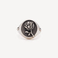 La bague Ramblin Rose en argent présente une rose centrale ainsi que deux éclairs de chaque côté.