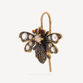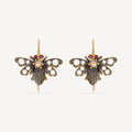 Ces boucles d'oreille abeille en or jaune sont rehaussées de diamants noirs et blancs ainsi que de rubis éblouissants.