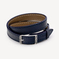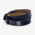 Bracelet en cuir bleu foncé avec charm Aum en argent et diamants blancs.