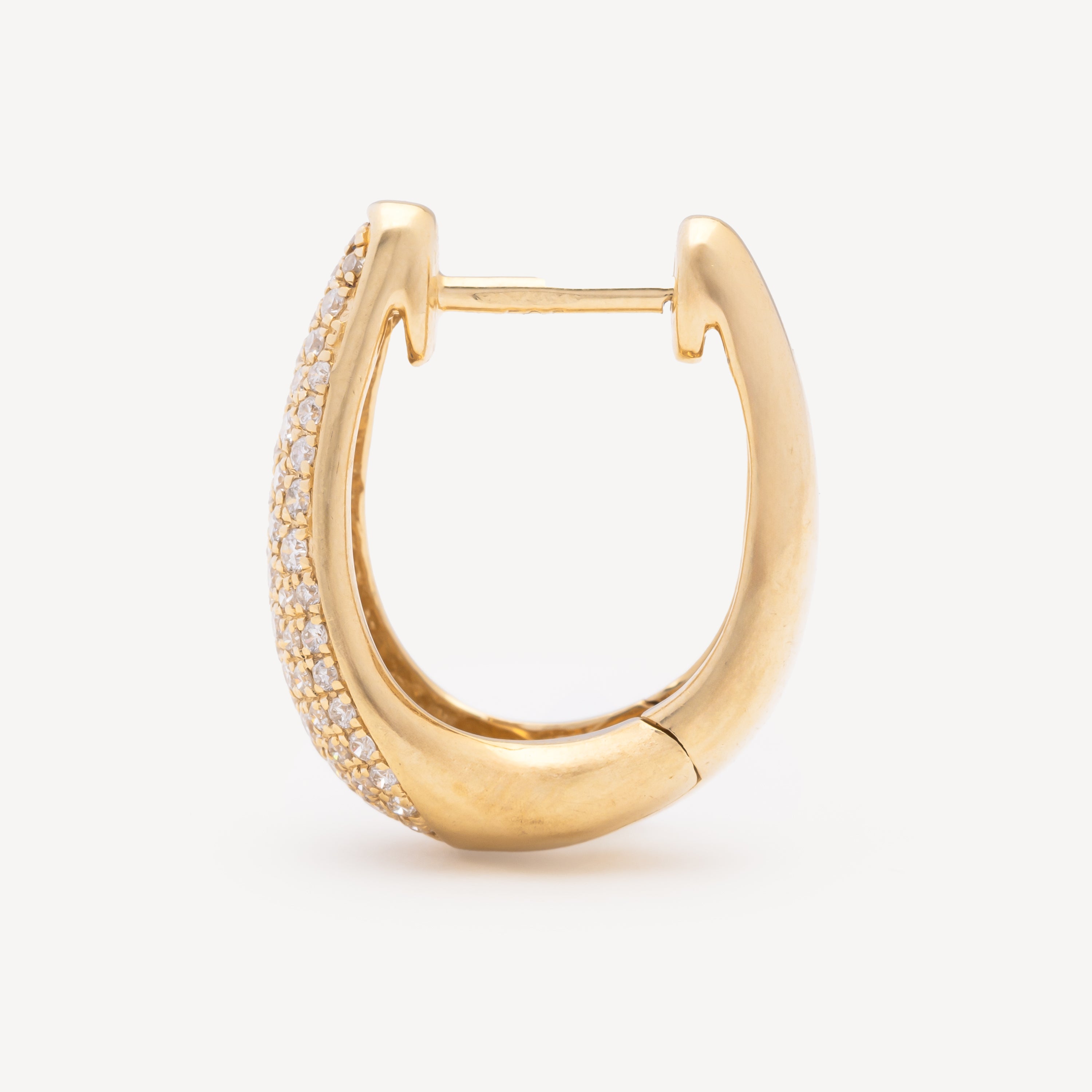Elégantes créoles ovales et épaisses en or 14ct avec pavage de diamants blancs ronds. À porter seules ou en accumulation pour un style moderne et sophistiqué.