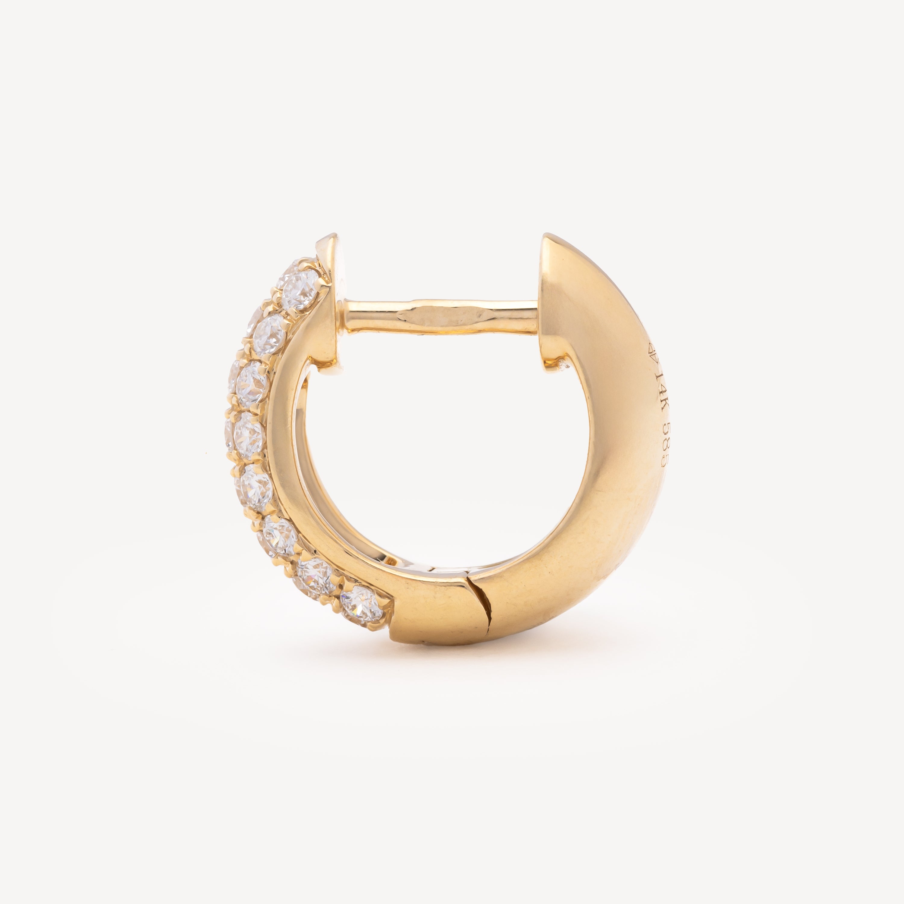 Petite créole classique en or jaune 14ct, pavée de diamants blancs.