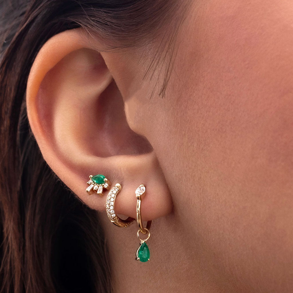 Piercing Créole 11mm Or Jaune Diamant Princesse 2x2mm