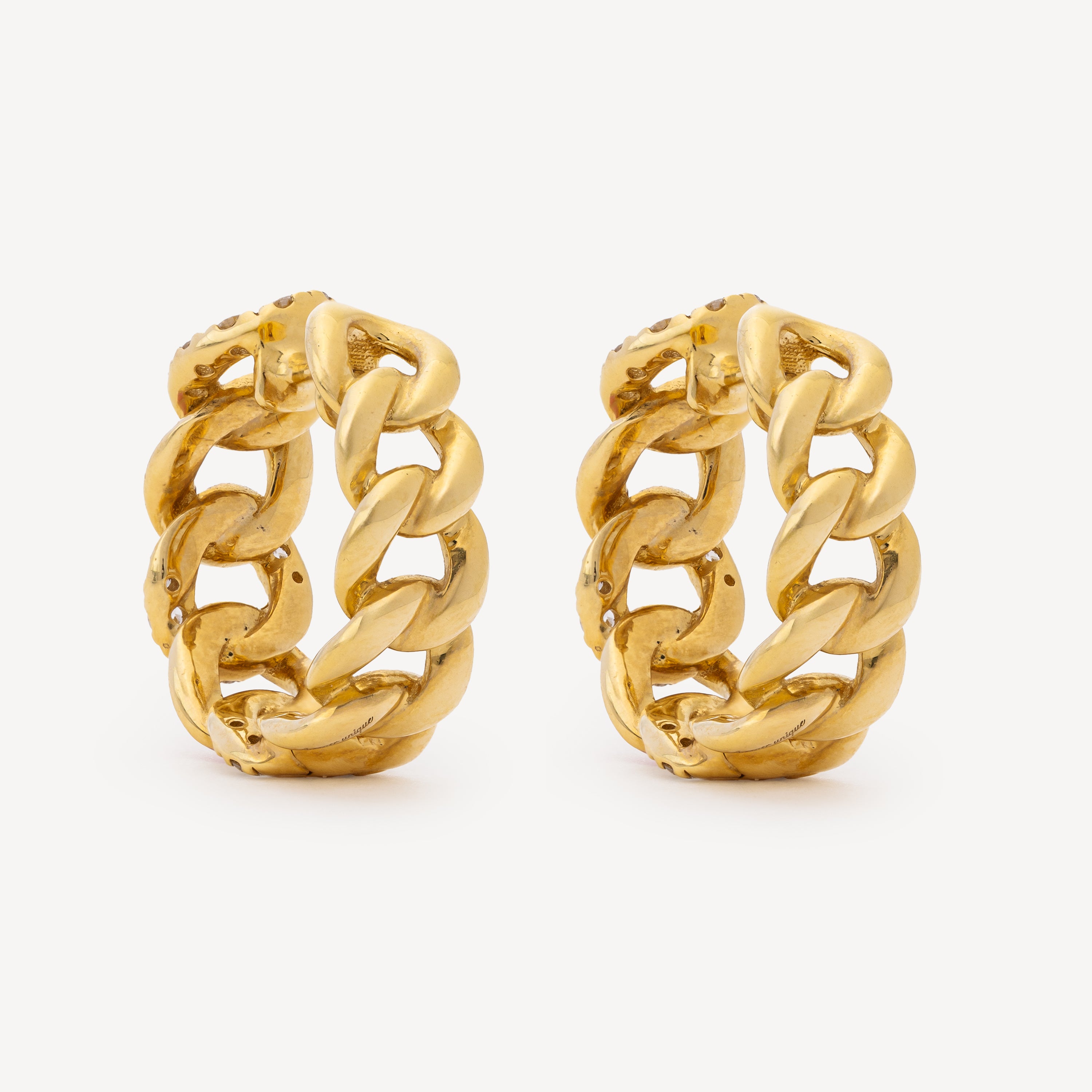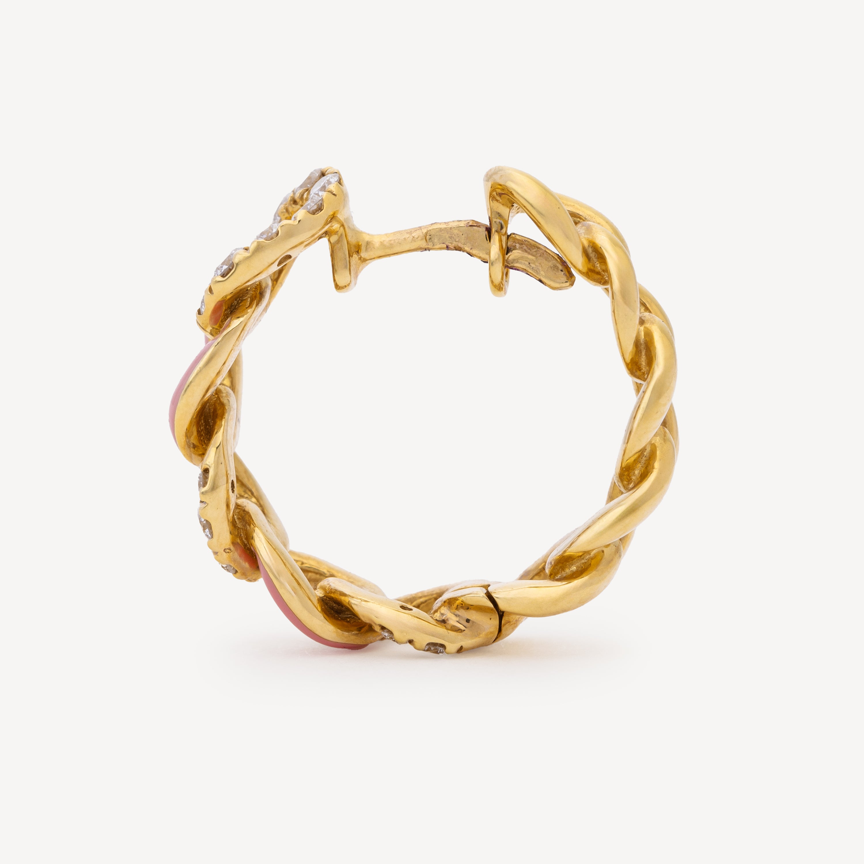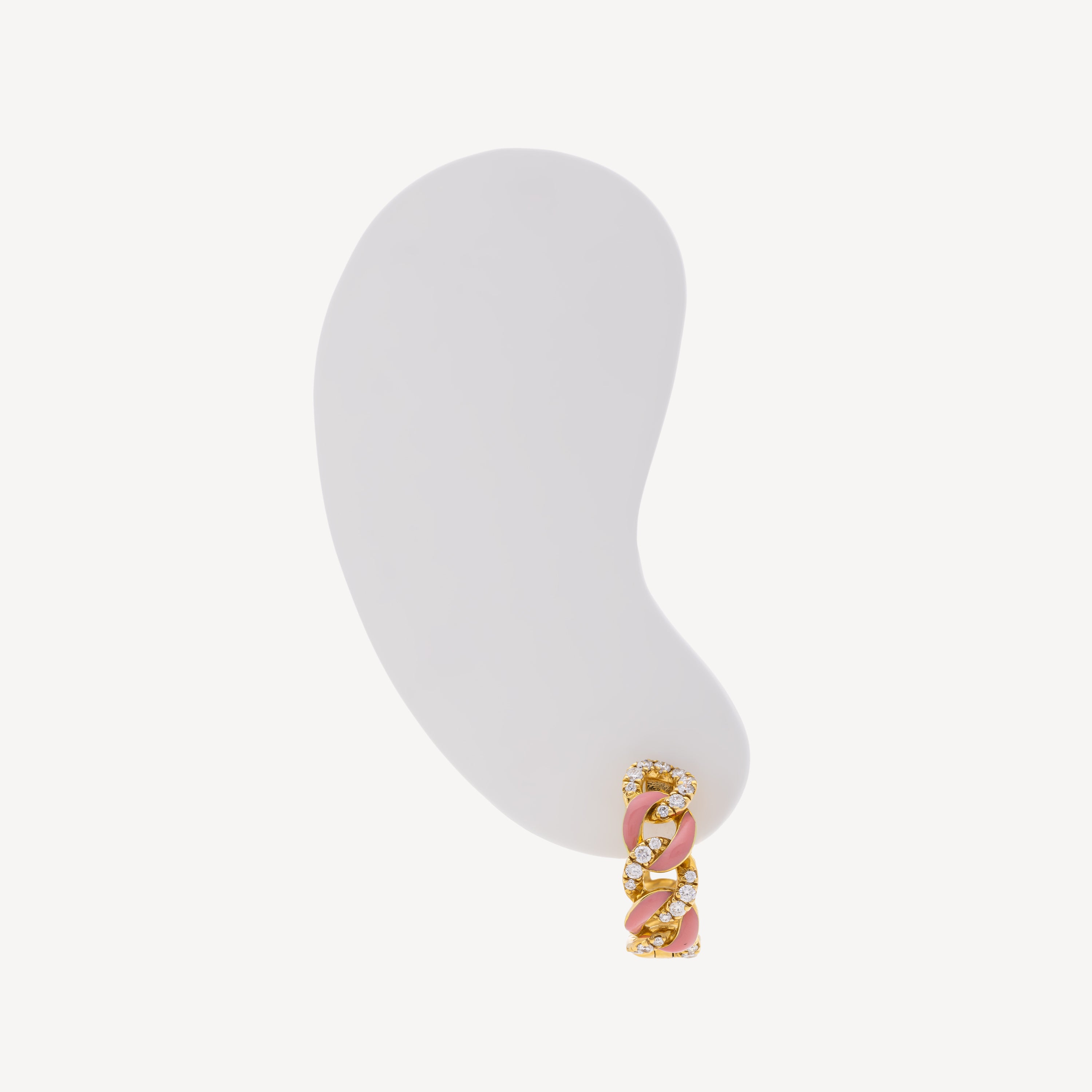 Boucles d'oreilles Groumette en or jaune 18ct avec diamants taille brillant et émail rose.