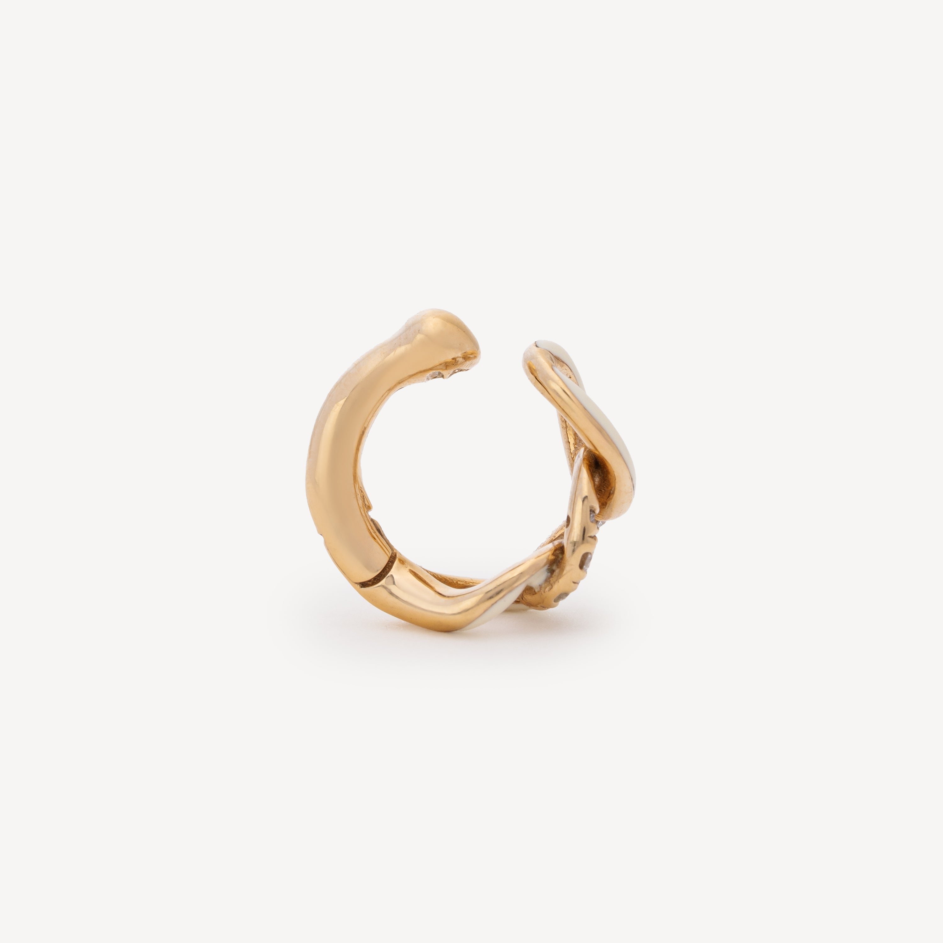 Ear cuff en or rose 18ct composée de maillons et orné de diamants blancs sur le maillon du milieu.