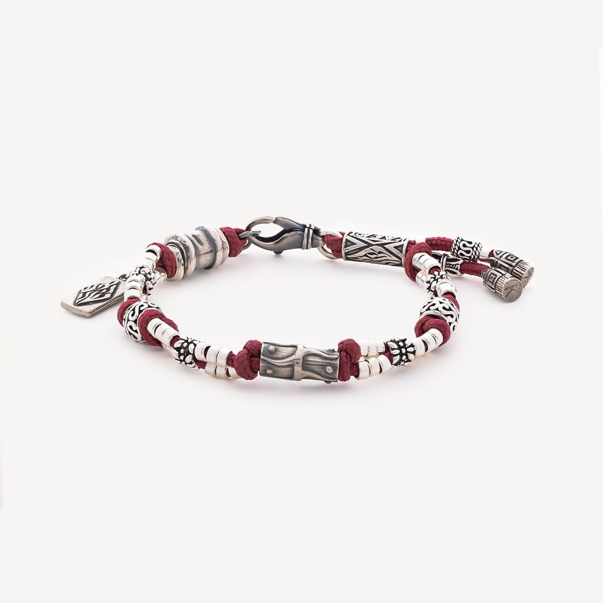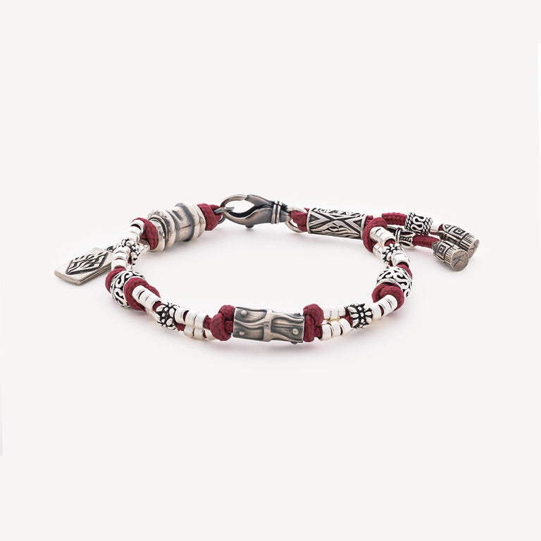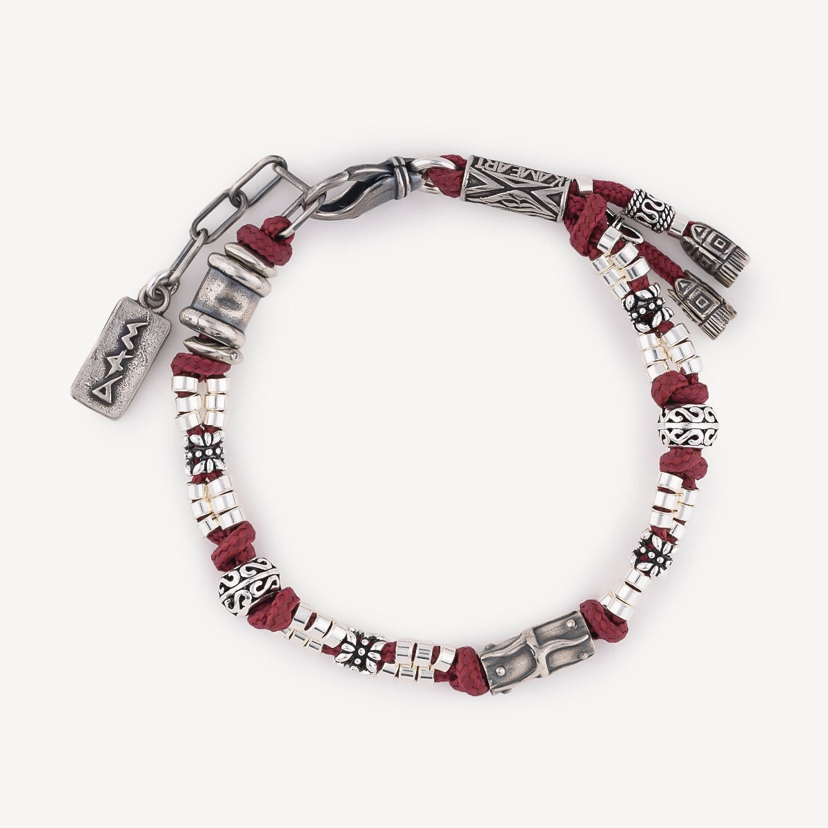 Découvrez le Bracelet Jacob de la Maison Kameart. L’argent, lumineux et sincère, rencontre la profondeur du cordage bordeaux dans un dialogue authentique. Pensé comme un bijou de caractère, il se porte près de la peau et accompagne chaque geste, racontant une histoire de force tranquille.