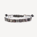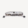 Bracelet monté sur un cordon noir composé de 22 lockes et 2 beads : 20 locks en nacre, 2 locks en or noir rhodié avec 2 diamants noirs ainsi que 2 beads en céramique noire.