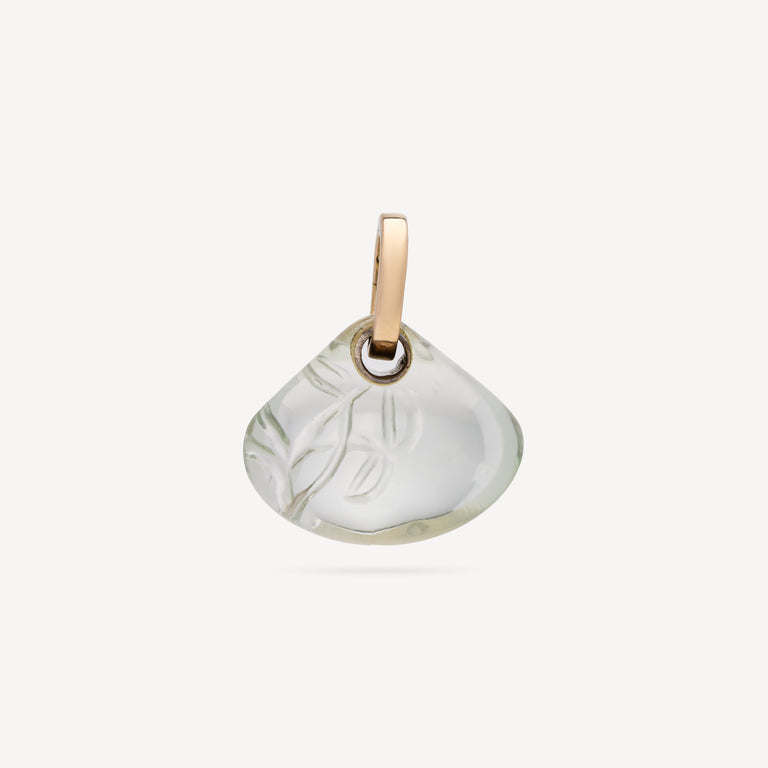 Pendentif en améthyste verte gravé d’un arbre de vie avec bélière en or blanc