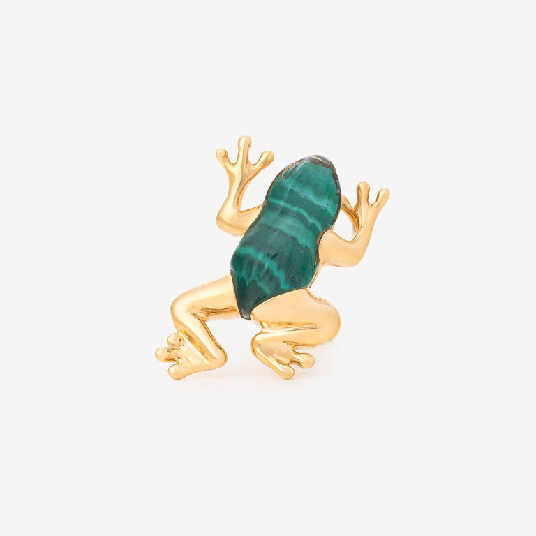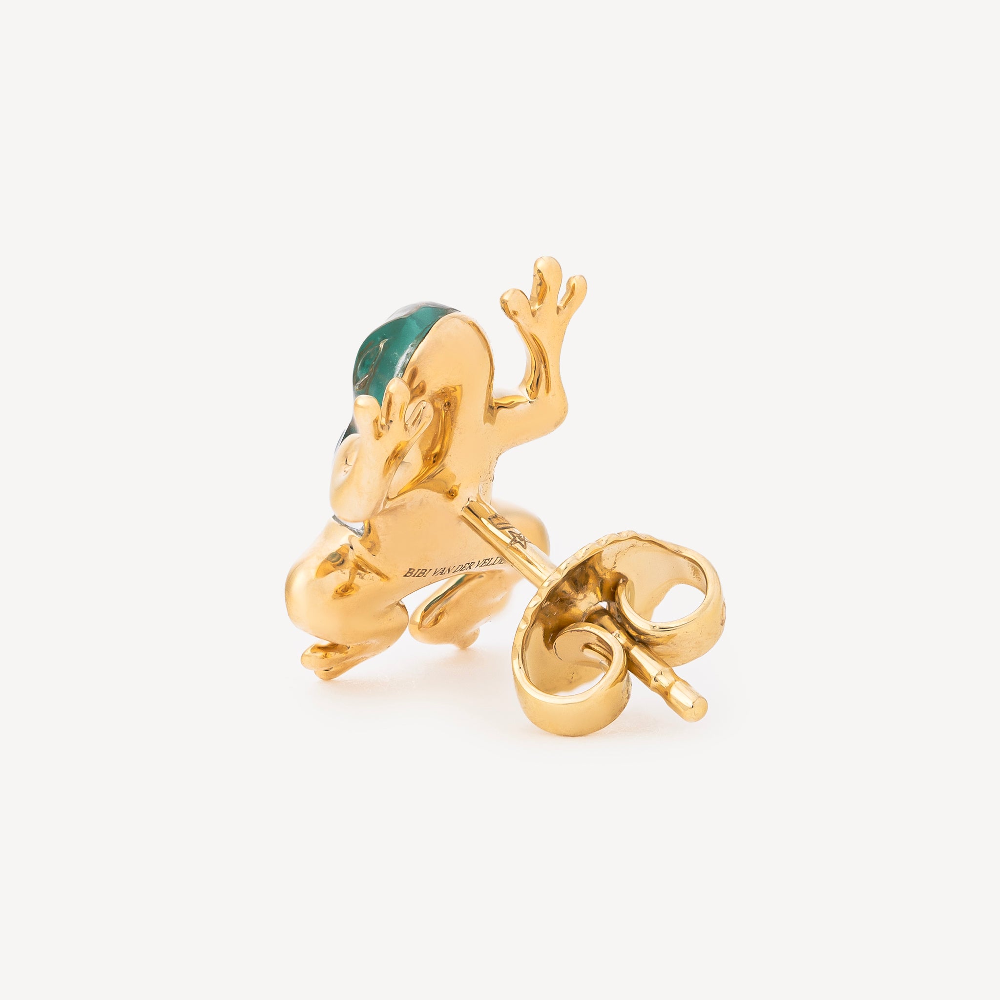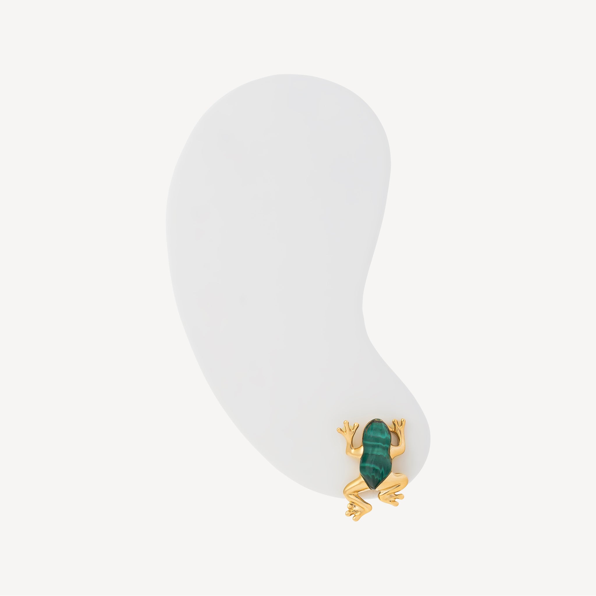 La puce d'oreille signée Bibi Van Der Velden est une création alliant sophistication et nature. La petite grenouille en or jaune, ornée d'une malachite verte aux motifs naturels, incarne l'esprit ludique et raffiné de la maison. La malachite favorise la transformation, la protection et la guérison du cœur.