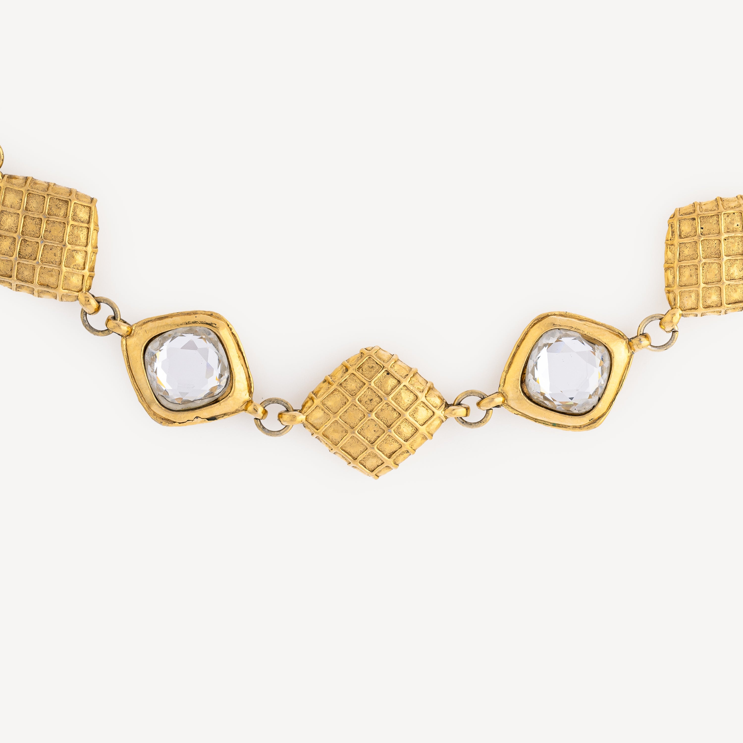 Collier vintage composé de losange en métal finition dorée et de cristaux argentés.
