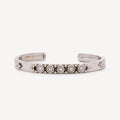 Bracelet jonc en argent orné de motifs fleurs et de diamants.