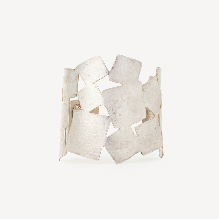 Bracelet manchette en laiton argenté.
