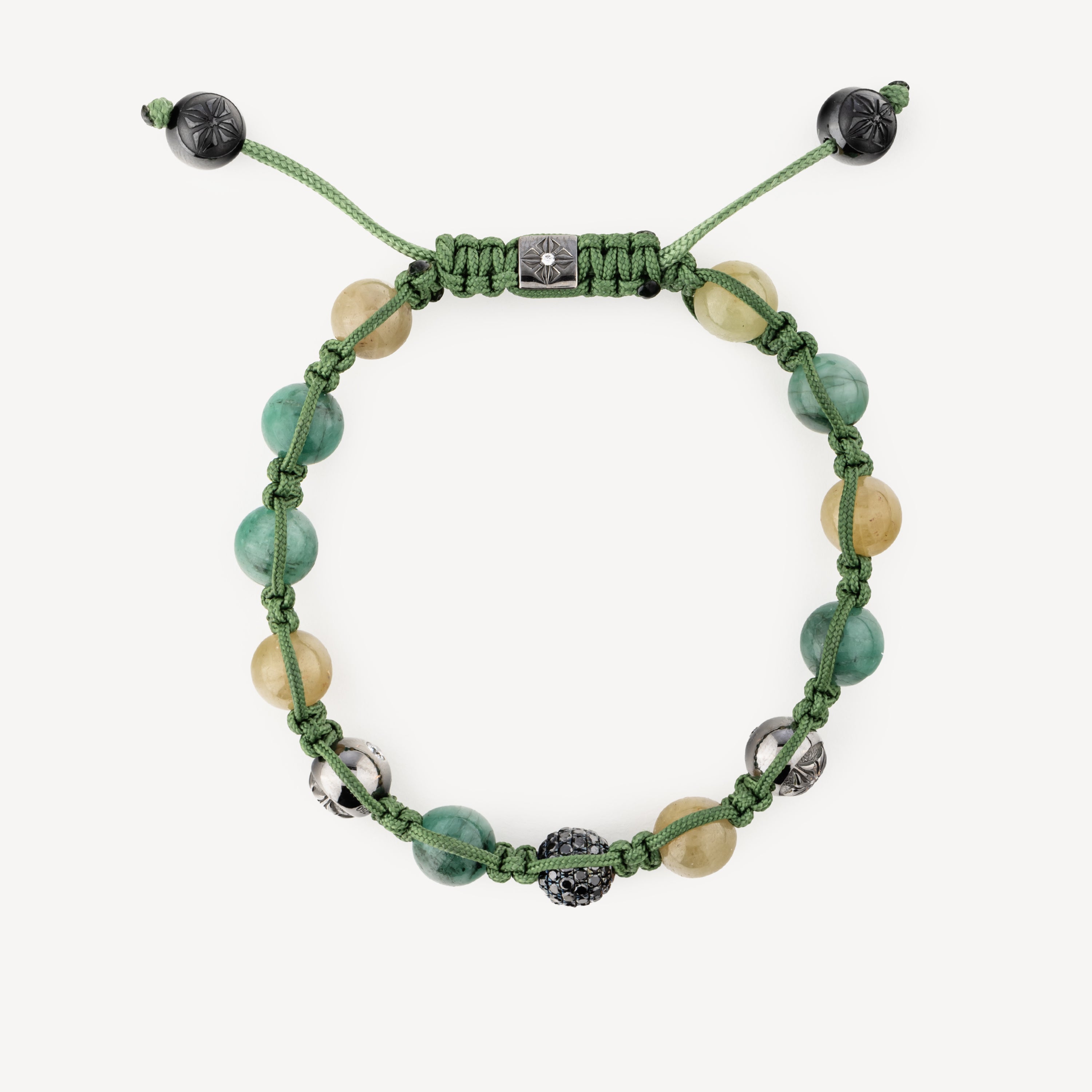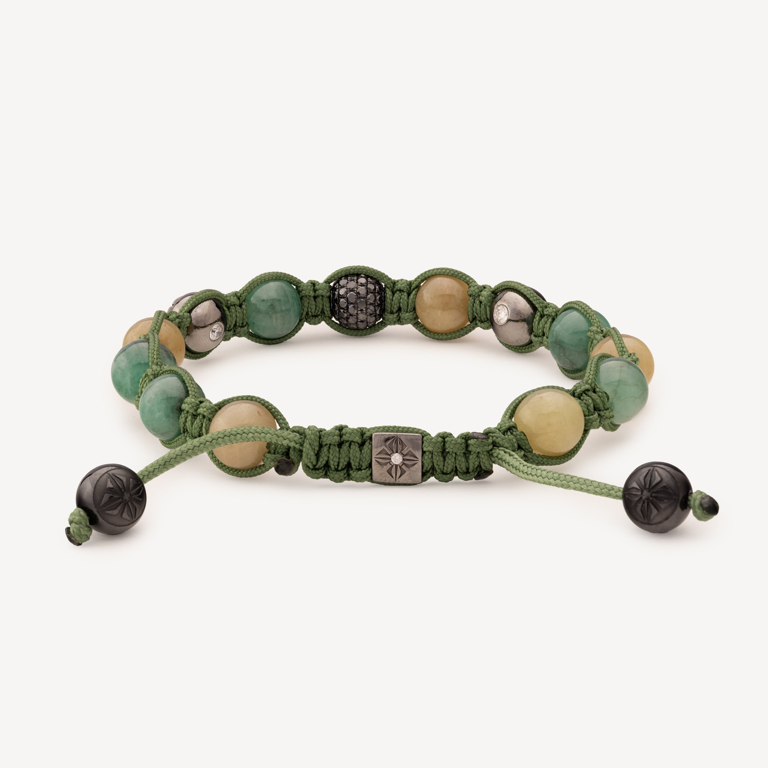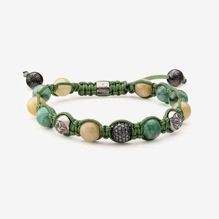 Bracelet tressé avec émeraudes, diamants noirs et blancs et or 18ct.