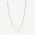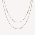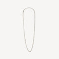 Chaîne sautoir en argent ornée de perles. Peut se porter en sautoir double tours ou en ras de cou quadruple tours.
