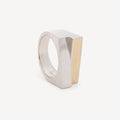 Apportez une touche d'élégance à votre style avec cette bague au design architectural unique. Fabriquée en argent et or jaune, cette pièce remarquable joue sur les contrastes et les formes géométriques audacieuses.