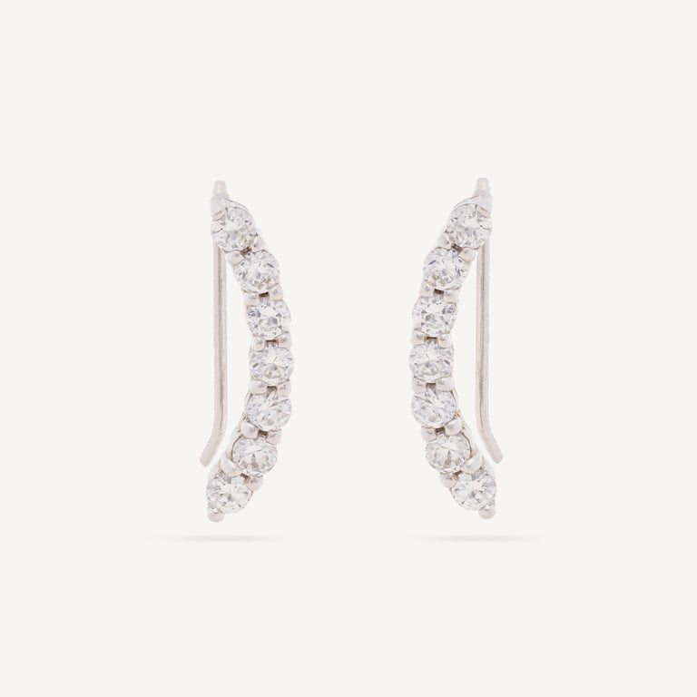 Boucles d’oreille montantes en argent pavées de sept diamants blancs.