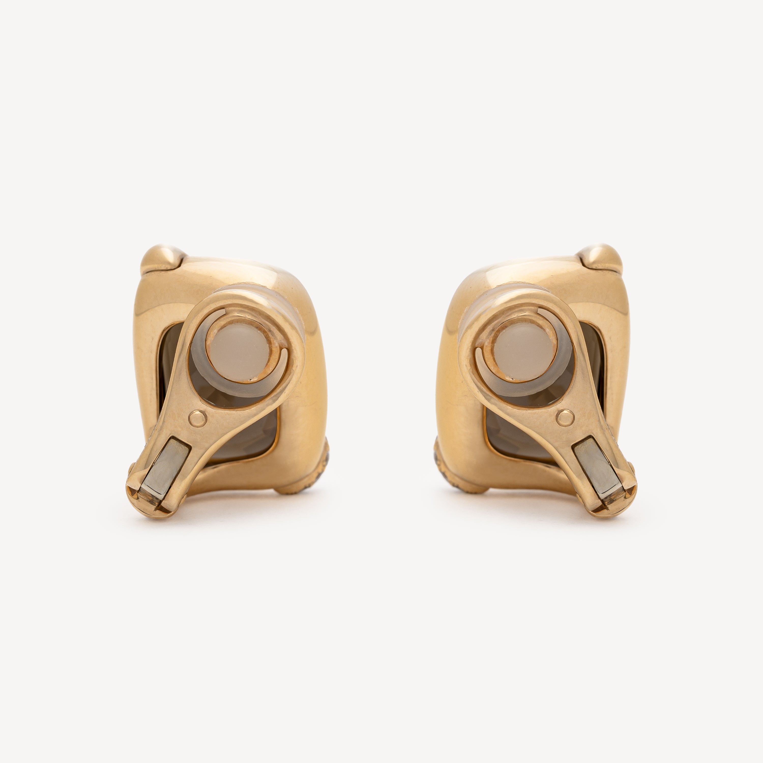Boucles d'oreille clips en or jaune ornées d'un quartz fumé et d'une griffe pavée de diamants.