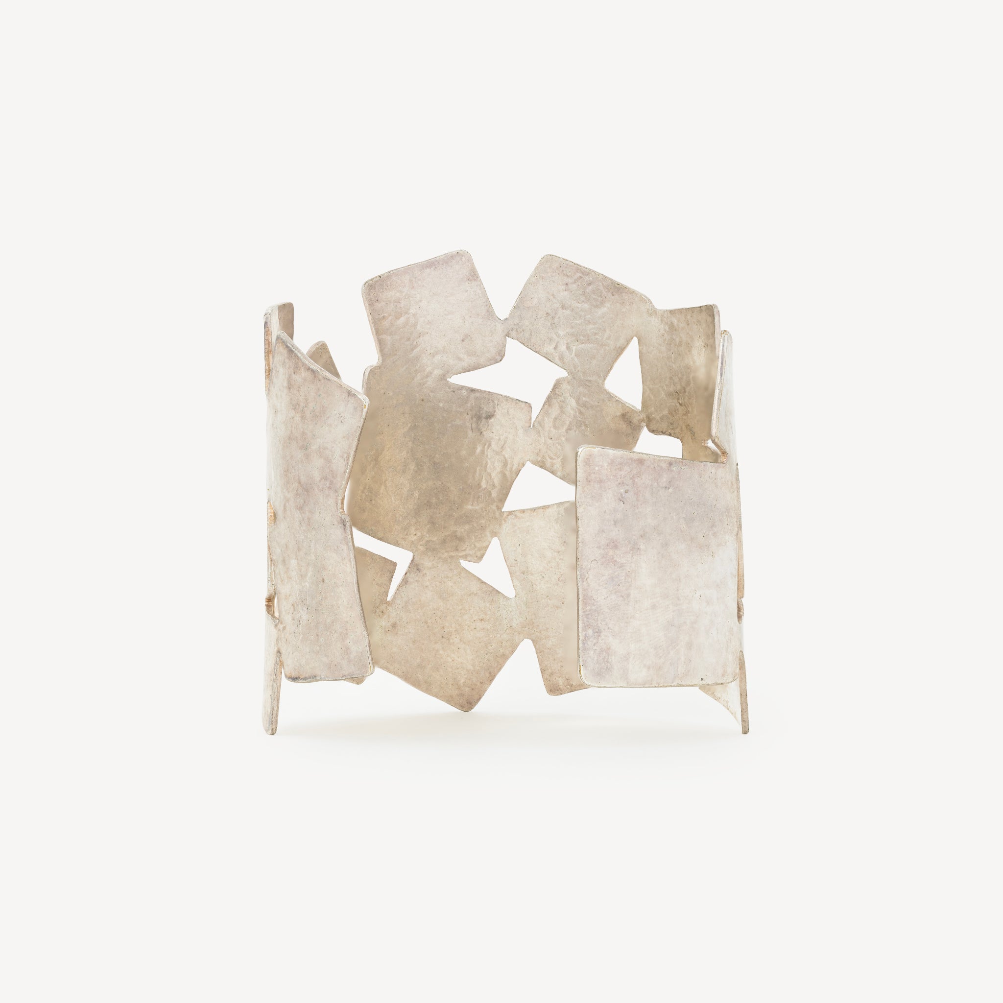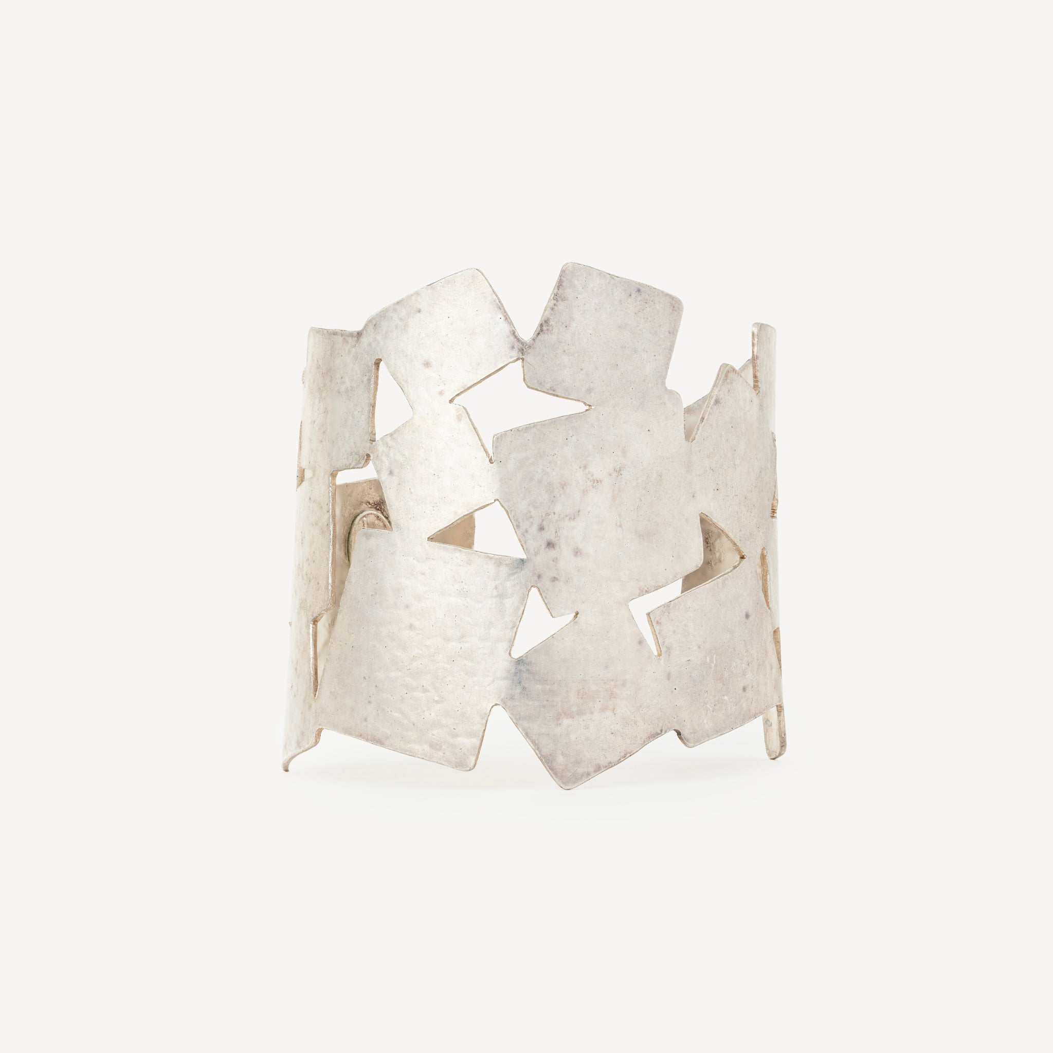 Bracelet manchette en laiton argenté.