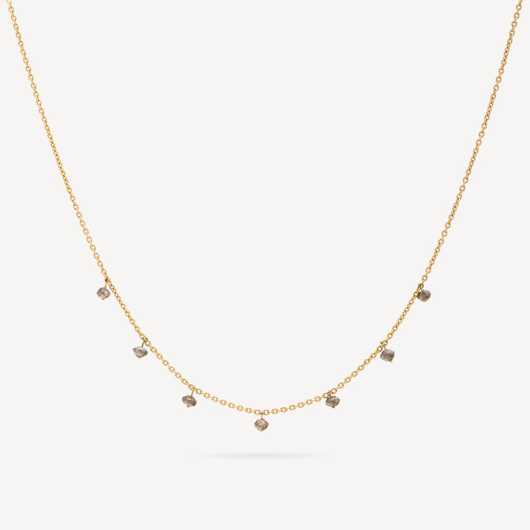 Collier en or jaune orné de sept diamants bruns suspendus.