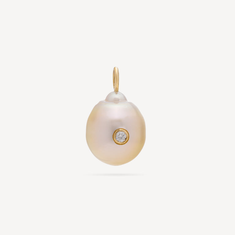 Pendentif en or jaune orné d’une perle avec diamant blanc. Présence de petites cernes sur la perle.