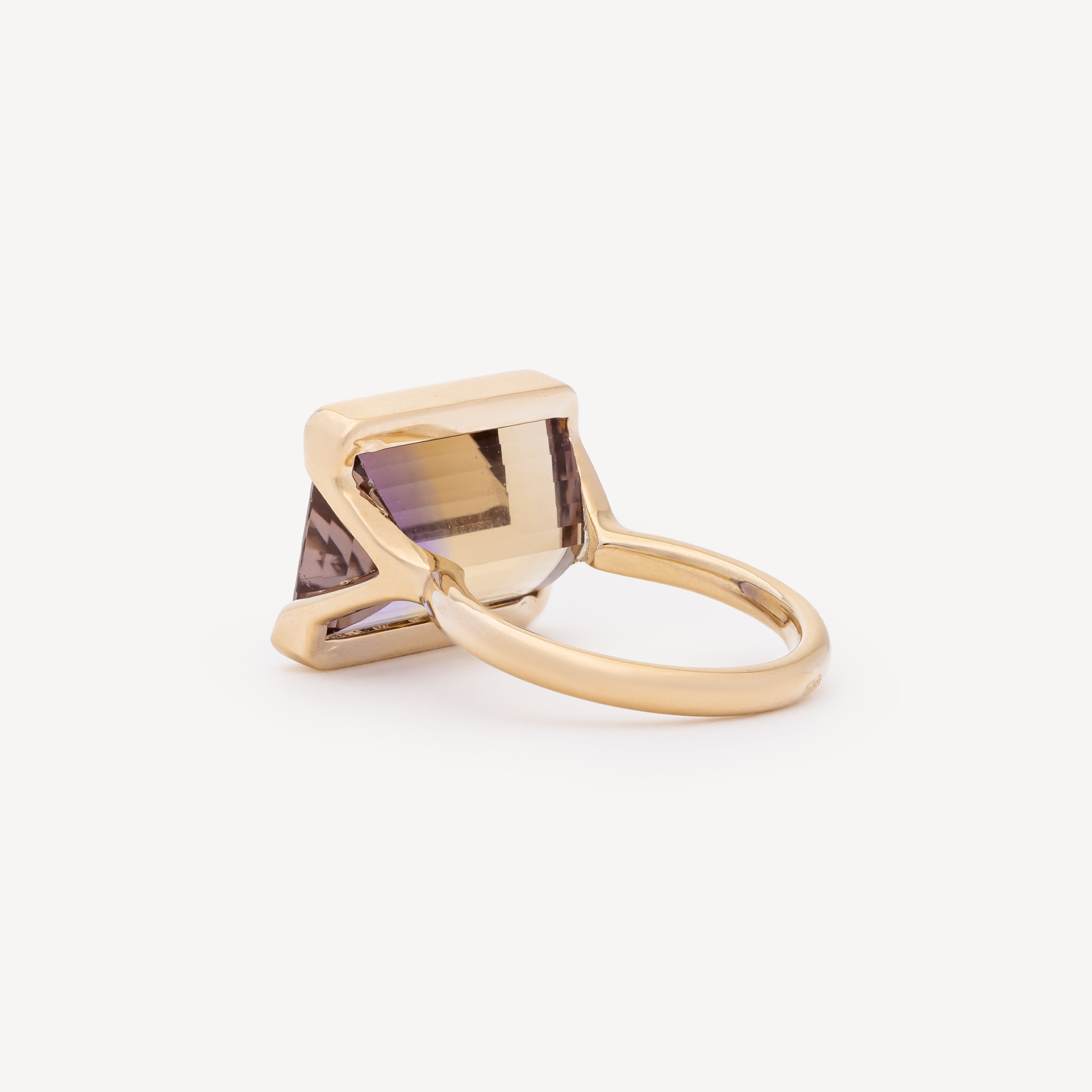 Bague confectionnée en or jaune sublimée par une pierre amétrine aux reflets violets
