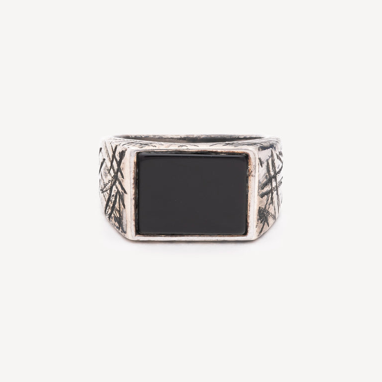 La bague Rectangulaire Argent Onyx affirme une présence nette et structurée, dans l’esprit des chevalières revisitées par Barrouyer. Sa forme allongée, presque architecturale, dessine des lignes franches qui épousent la main avec caractère. En son centre, l’onyx noir impose une profondeur silencieuse. Dense et opaque, il capte le regard sans jamais le refléter, apportant à la pièce une dimension sobre et magnétique. La patine évolue avec le temps, révélant peu à peu l’éclat naturel du métal. Une chevalière contemporaine, entre rigueur des lignes et matière vivante, pensée pour l’homme en quête d’un bijou à la fois puissant et intemporel.