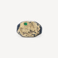 Cette chevalière en argent mêlée d'or est un bijou élégant. Elle est ornée d'une émeraude brut ce qui lui apporte cette sagesse au milieu de ce côté rock.