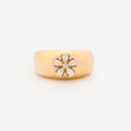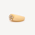 La bague fleur floret diamants en or jaune 18 carats présente une rosace de diamants au centre de la bague. Le diamant blanc incarne la pureté et la force intérieure.
