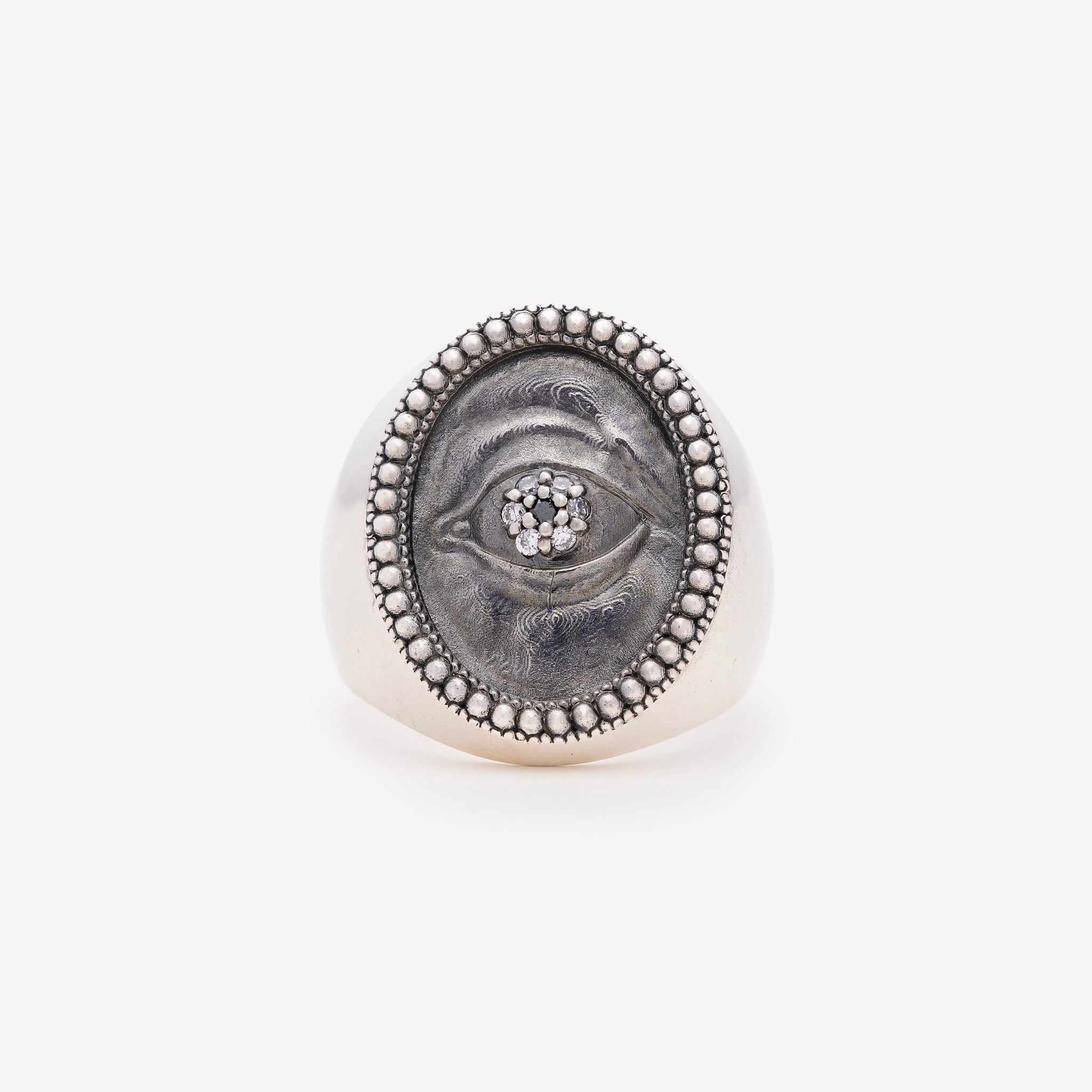 La bague Lover's Eye associe des diamants synthétiques fascinants à un diamant noir énigmatique pour symboliser l'amour, la tristesse et l'honnêteté. Le diamant noir symbolise la force, le courage et la résilience.