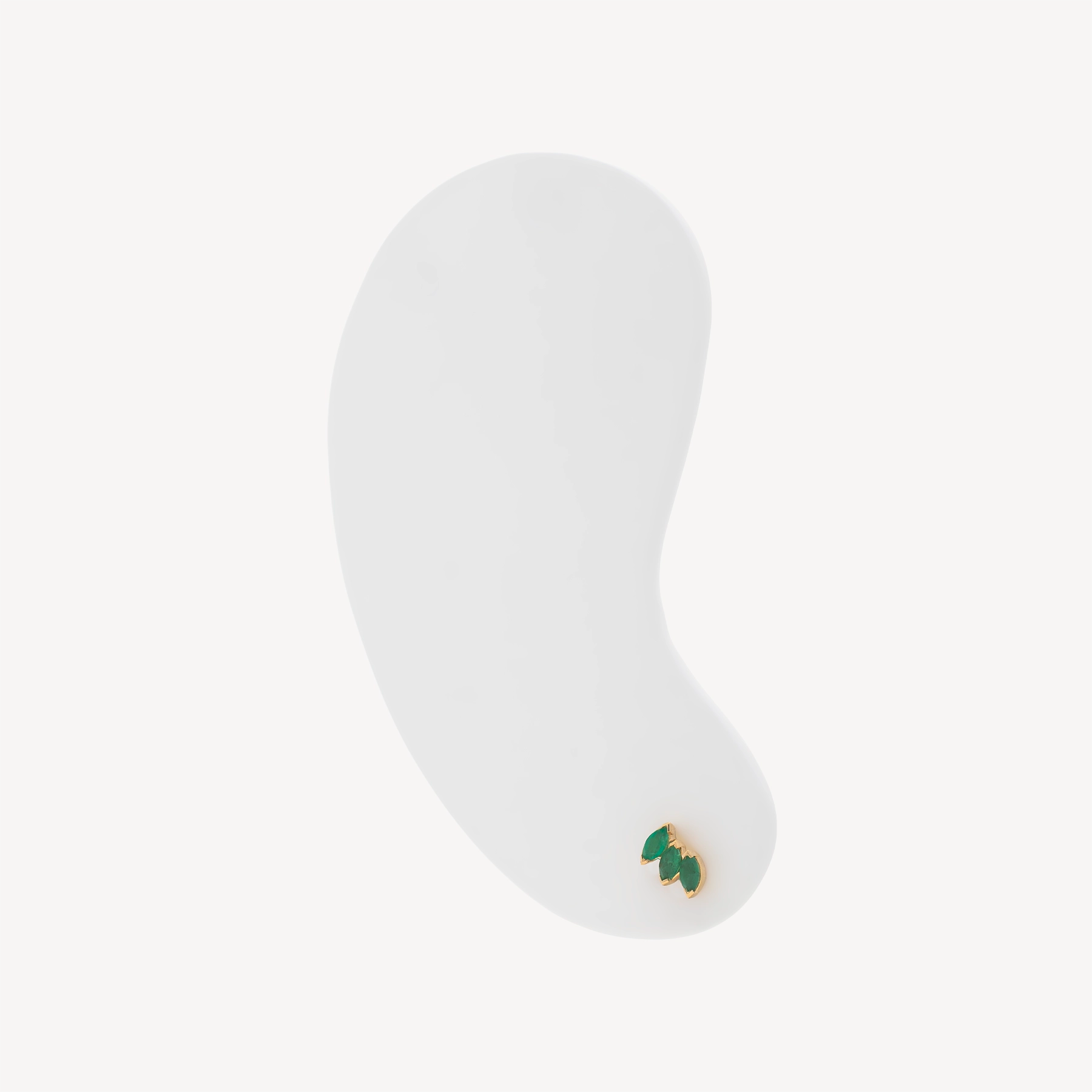 Ce piercing puce en or jaune illumine l’oreille avec trois émeraudes taille marquise, à la couleur profonde et vibrante.