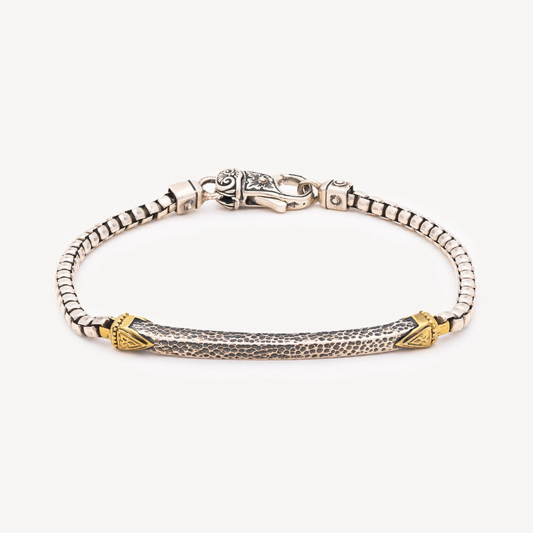 Le Bracelet Anchor Chain Kavos en argent et bronze impose sa présence au poignet avec une force immédiate. Sa chaîne inspirée des maillons d’ancre maritime évoque à la fois solidité et aventure, un hommage discret aux traditions grecques et à l’histoire nautique de l’archipel. Chaque maillon est travaillé à la main en Grèce, mêlant robustesse et précision artisanale. Une pièce où le style rencontre l’héritage, pensée pour durer et marquer.