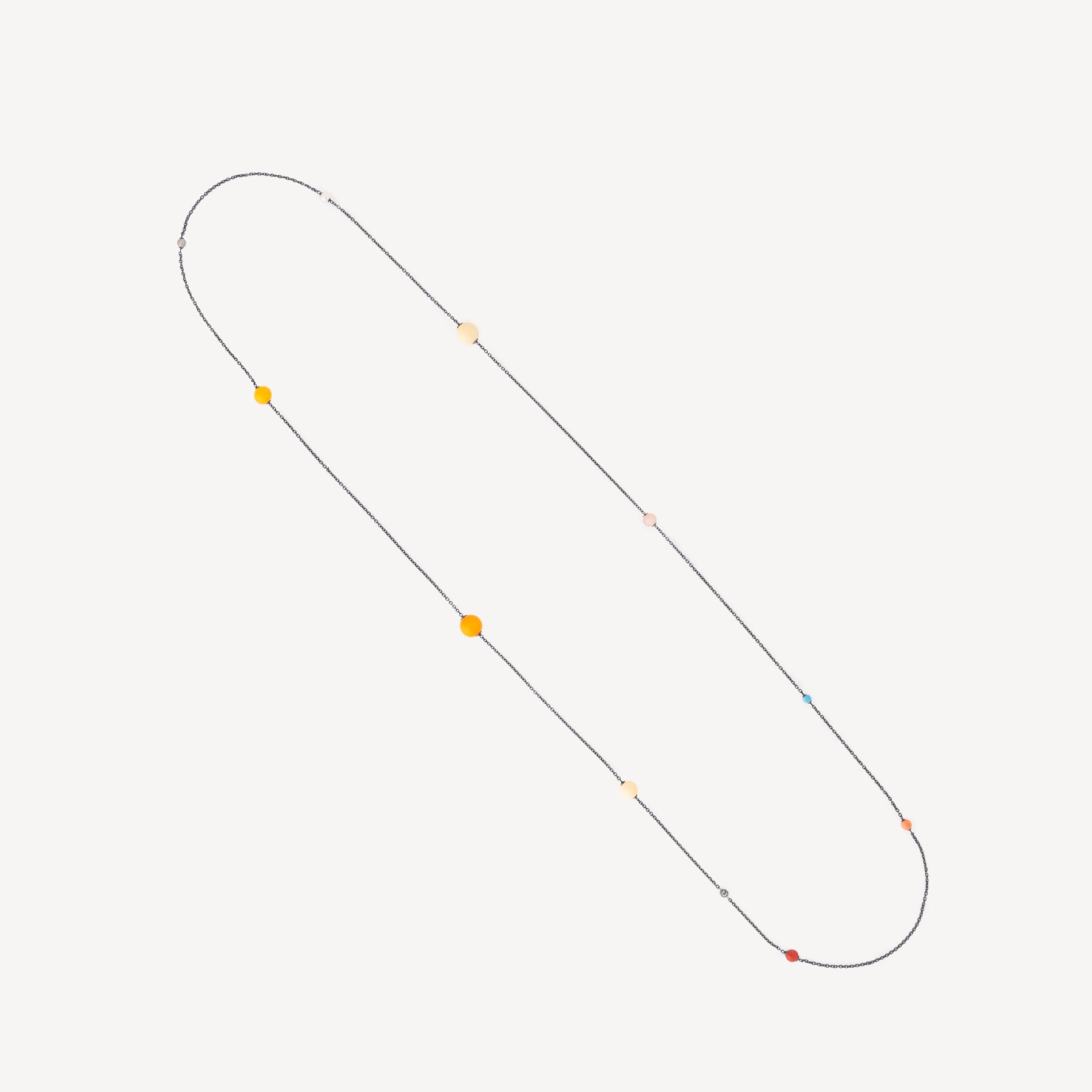 - Pierres : Turquoise, Pierre de lune rosée et grise, Corail, Perle d'eau douce, Ambre, Cornaline, Perles d’os de buffle éthiques
