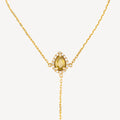 Ce magnifique bracelet de main en or jaune 18ct présente un saphir jaune taillé en poire au centre et entouré de diamants blancs.