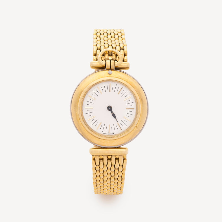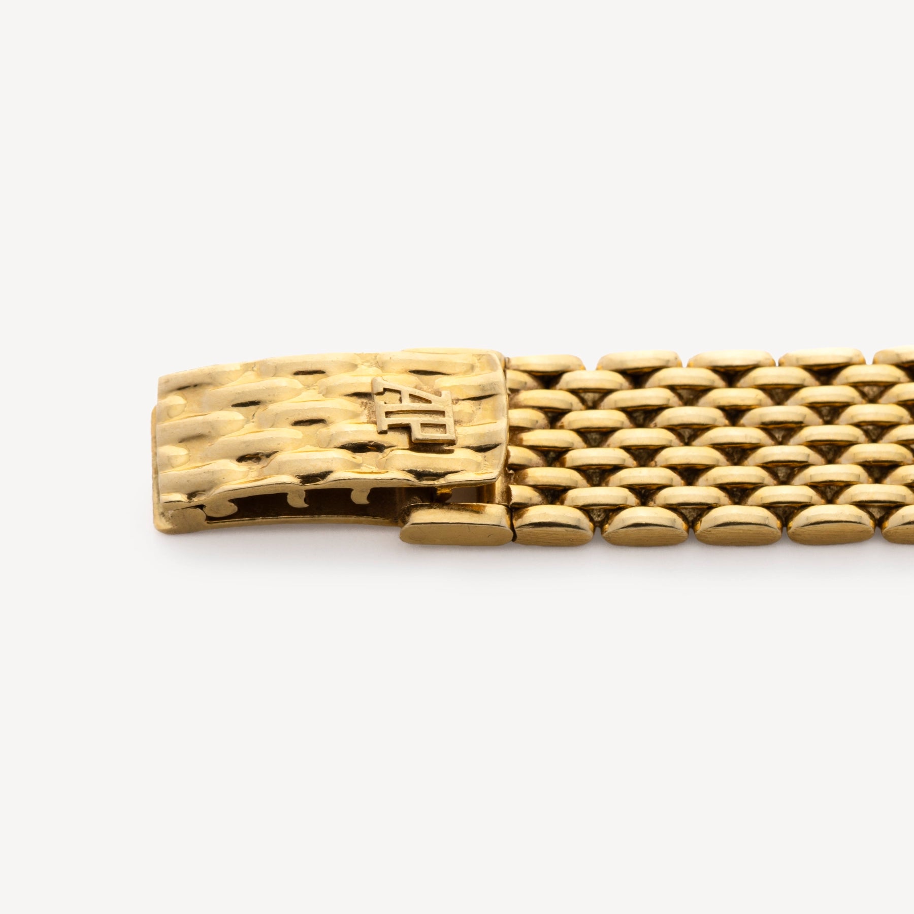 À la fin des années 1990, Audemars Piguet explore des territoires plus confidentiels, loin de ses icônes sportives. Le modèle dit “Philosophie” s’inscrit dans cette démarche plus intime : une réflexion sur le temps, non plus comme performance, mais comme expérience. Son boîtier “oignon” en or jaune, aux courbes pleines et presque sensuelles, évoque certaines montres de poche du XIXe siècle, rappelant les origines classiques de l’horlogerie. Ce choix formel, rare à l’époque, traduit une volonté de revenir à une esthétique plus organique, presque méditative. Le cadran, volontairement épuré, renforce cette idée d’un rapport apaisé au temps. Rien de démonstratif, tout est dans la présence, dans l’équilibre, dans la justesse. Produite en quantités limitées, cette montre appartient à ces créations discrètes d’Audemars Piguet, recherchées aujourd’hui pour leur singularité et leur liberté de ton. Une pièce de connaisseur, à la fois historique et profondément personnelle.