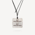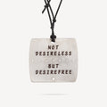 Collier pendentif plaque en argent gravée : “Not desireless but desirefree.”