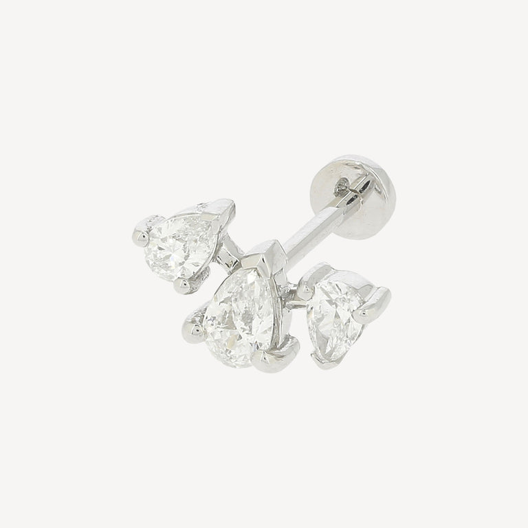 Piercing Puce Trois Poires Espacées Diamants Or Blanc